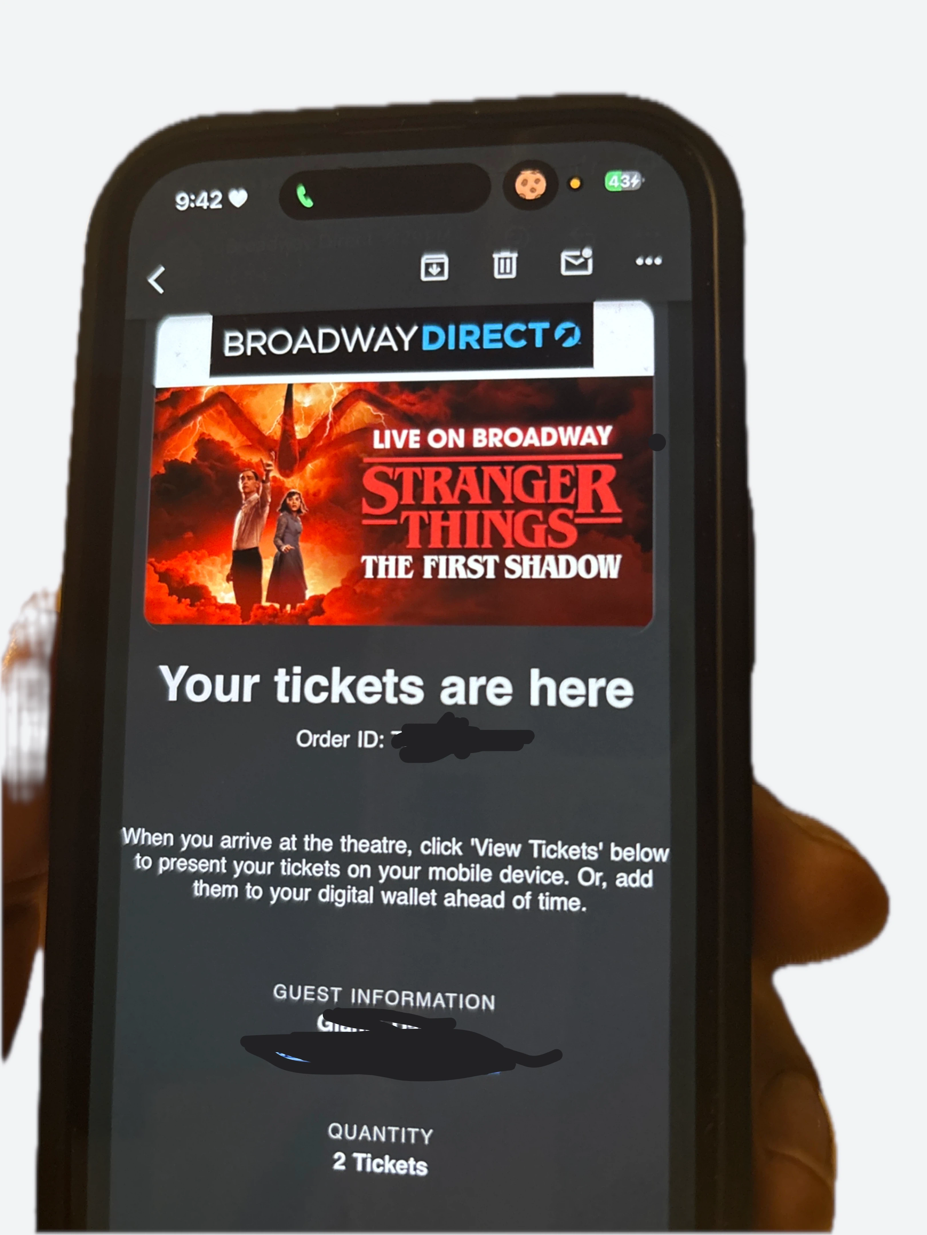Selling two tickets to see Stranger Things: The First Shadow on Broadway! Your tickets are ready to be transferred. Just click 'View Tickets Oct 12th at 1pm