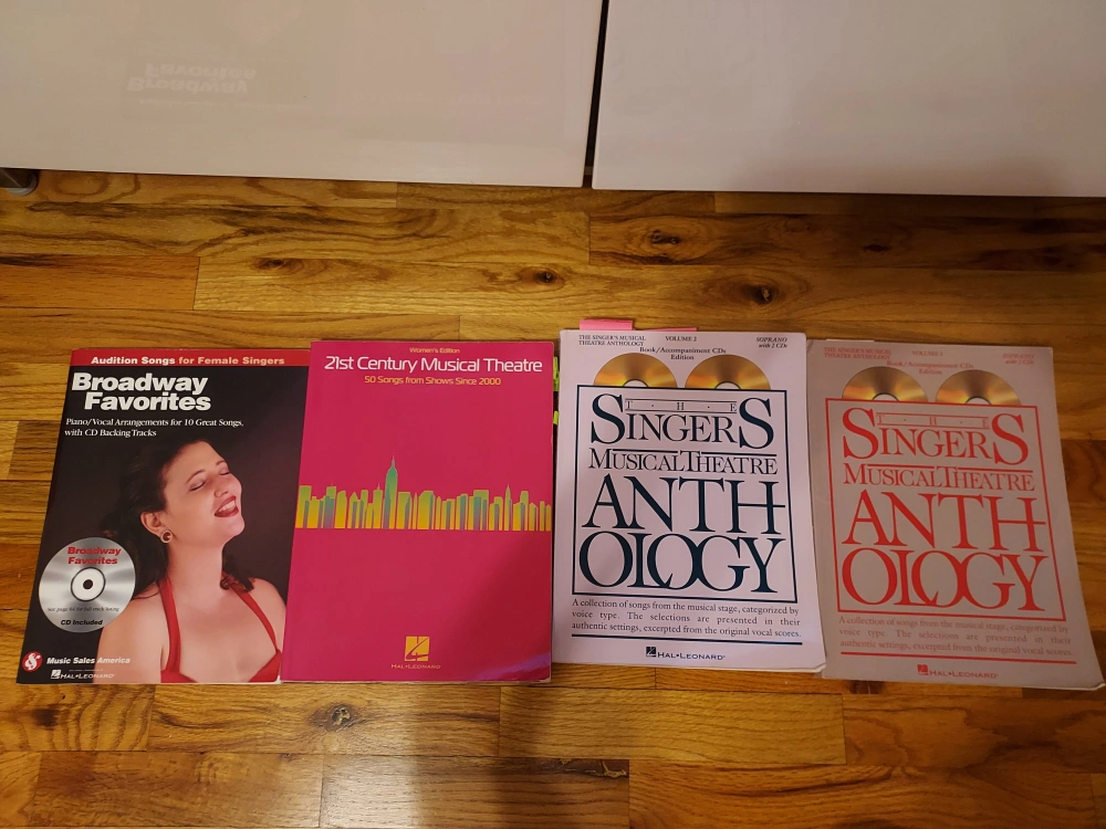 Selling a bundle of sheet music books! Includes: - Broadway Favorites: Audition Songs for Female Singers with CD - 21st Century Musical Theatre: 50 Songs from Shows Since 2000 - The Singer's Musical Theatre Anthology, Volume 2 Soprano Book/Accompaniment CDs Edition - The Singer's Musical Theatre Anthology, Volume 1 Soprano Book/Accompaniment CDs Edition