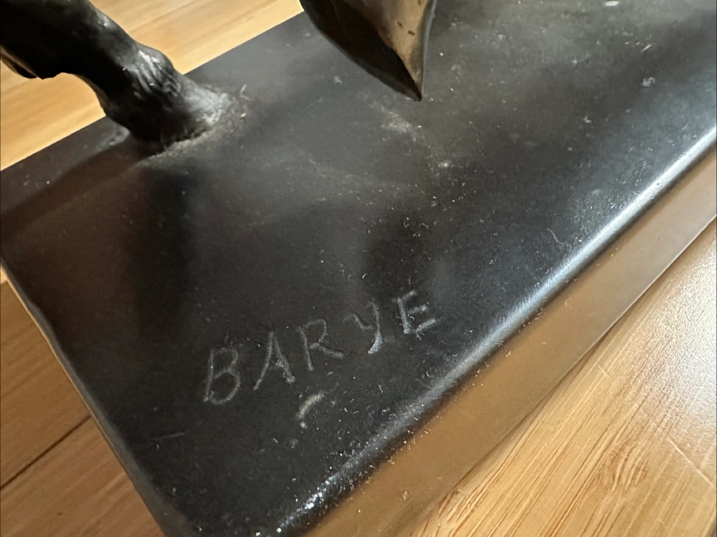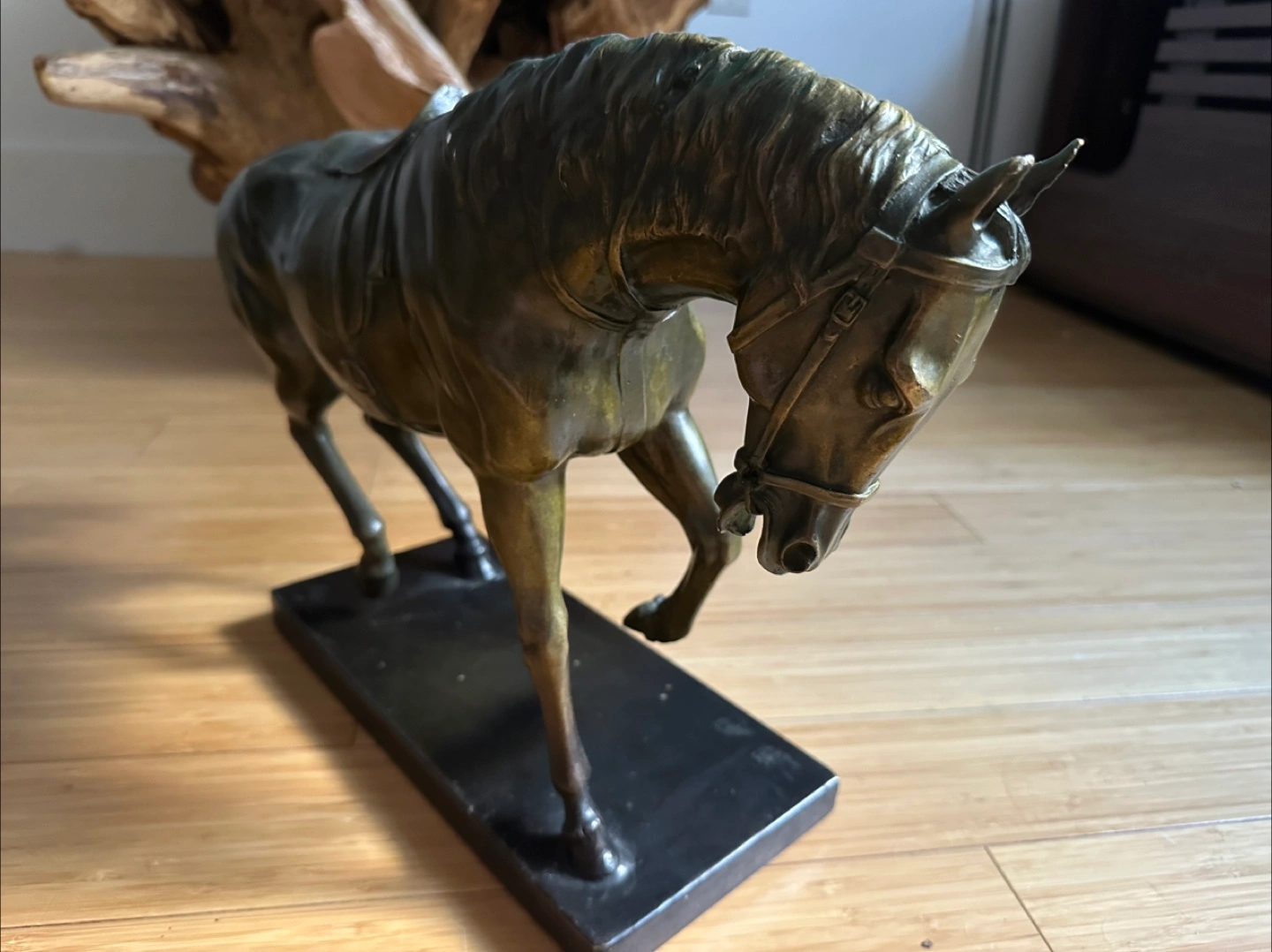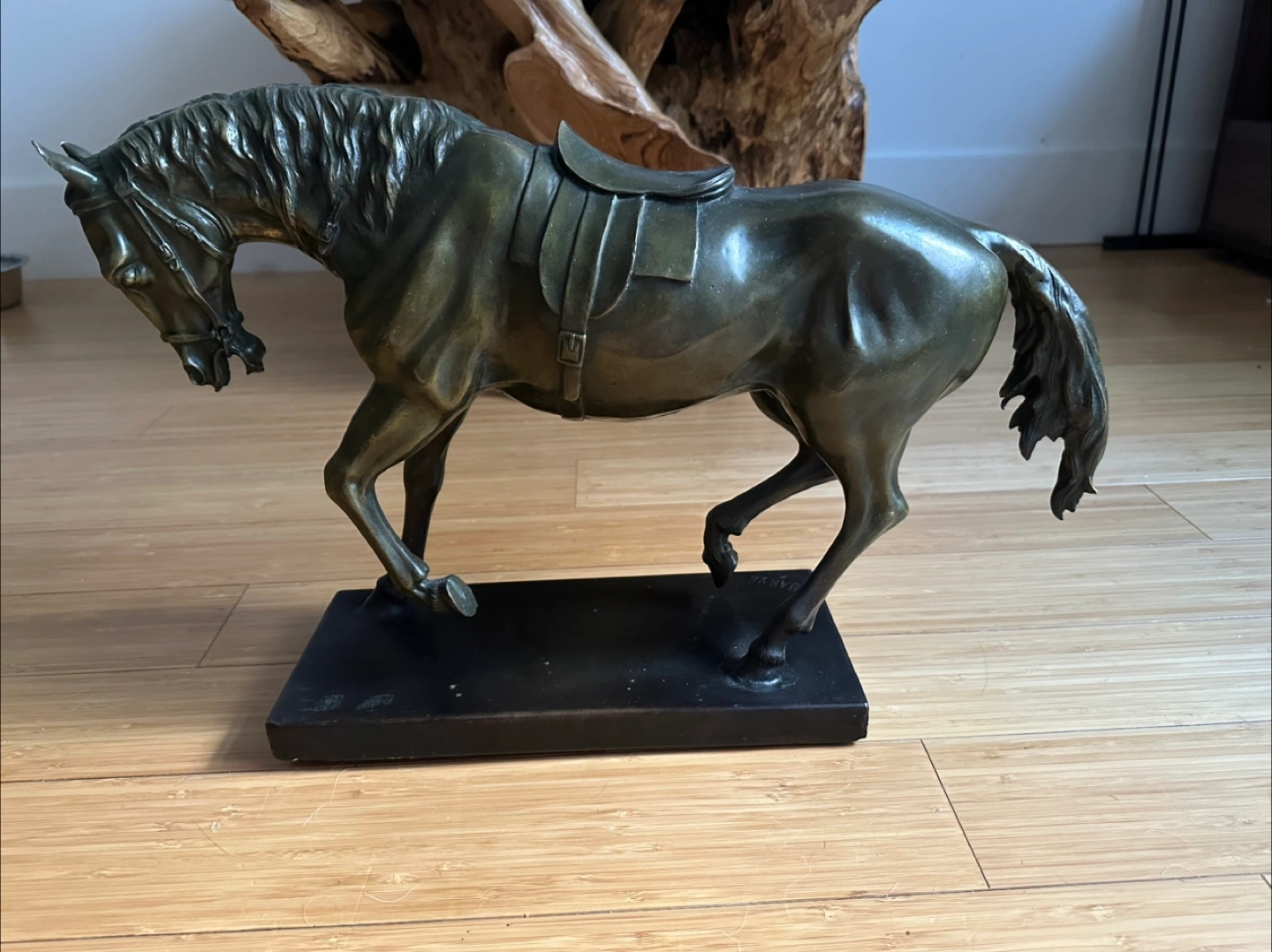 52Heavy Bronze sculpture of a horse on a base. Features intricate details.
