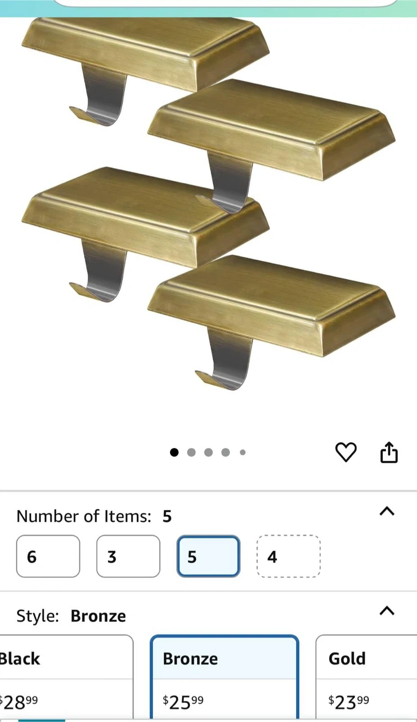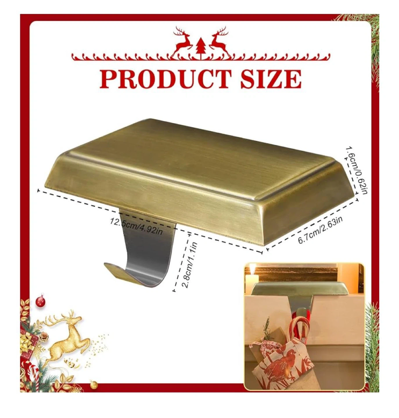 60Selling a set of 5 bronze stocking holders! They're perfect for hanging your stockings during the holidays. - Color: Bronze - Number of Items: 5 - Dimensions: 12.5cm/4.92in x 6.7cm/2.63in x 1.6cm/0.62in