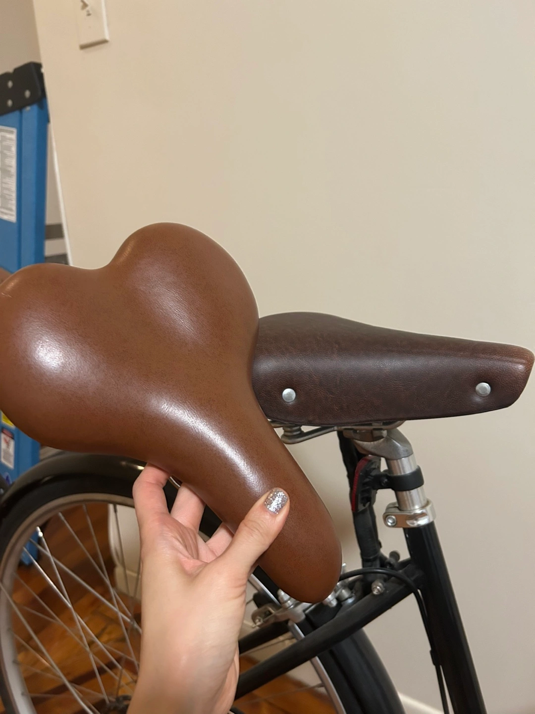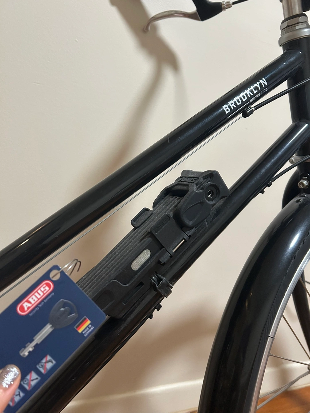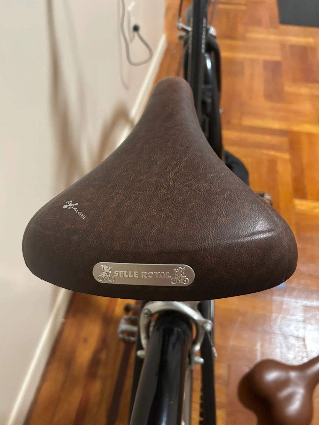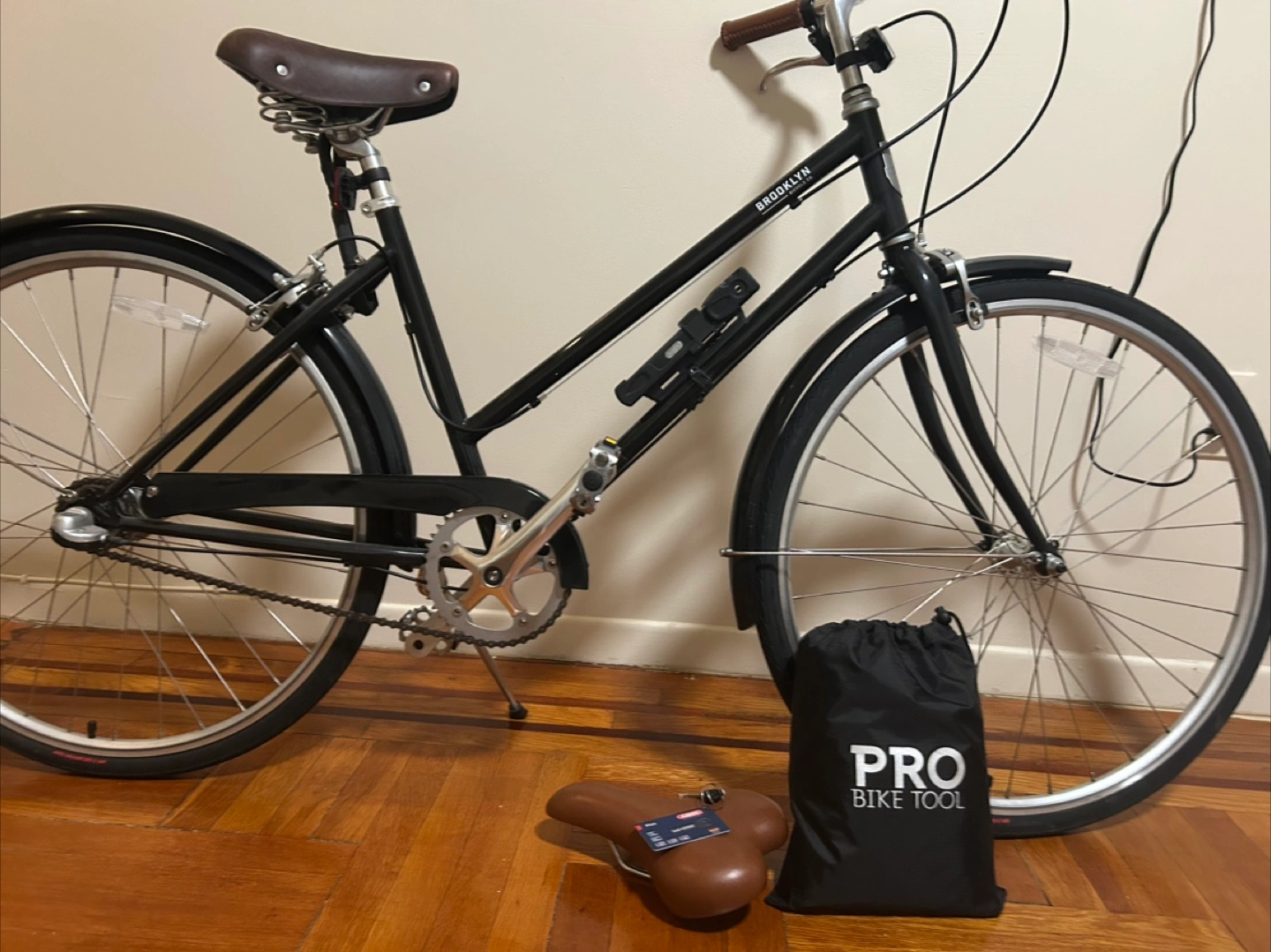 70Black bike with silver wheels. Includes black fenders, a brown seat, and lock. A great way to enjoy a peaceful ride through the city. The bike cover, original saddle, bike lock are all included as extras. * Used less than 10 times *