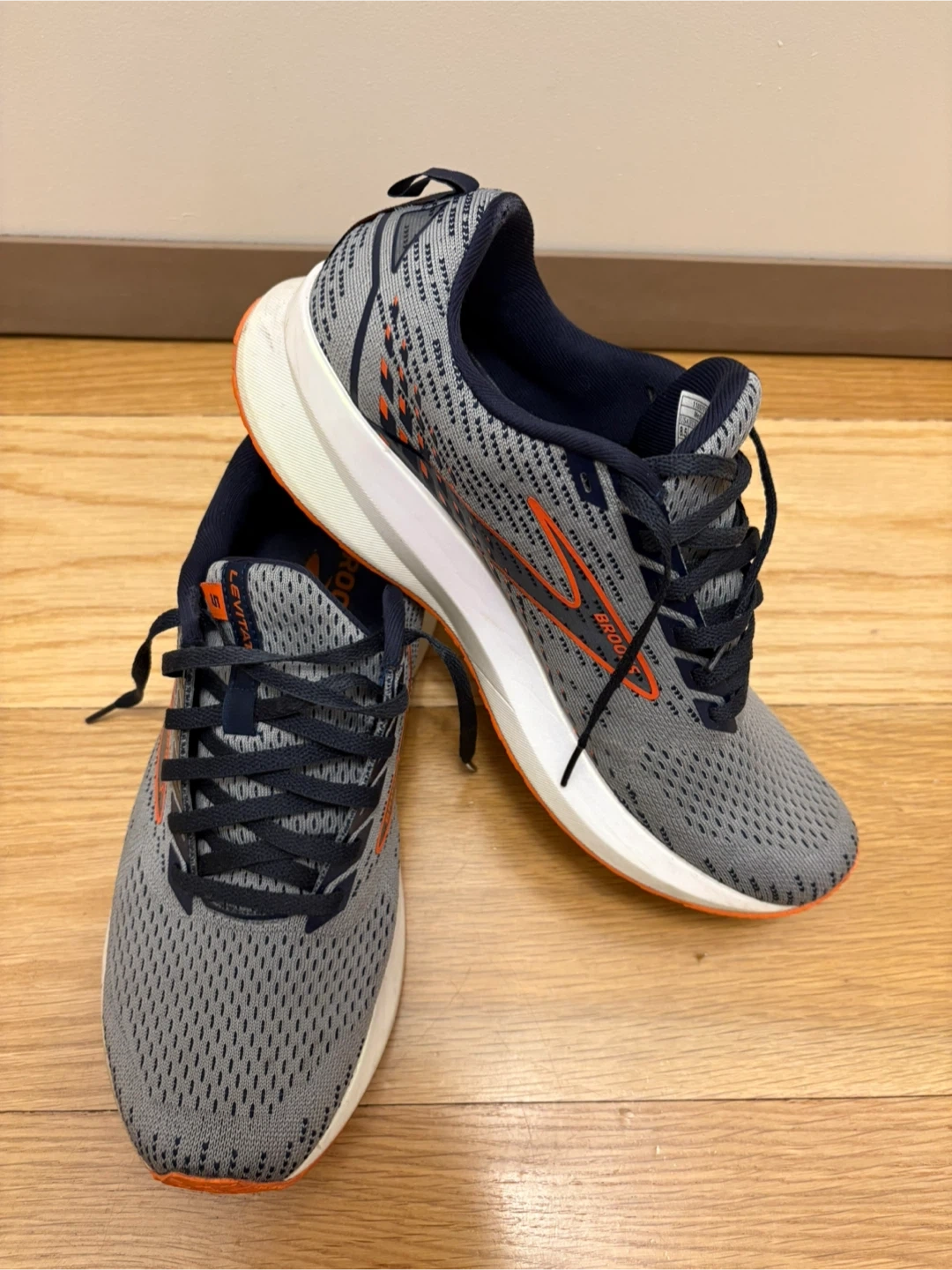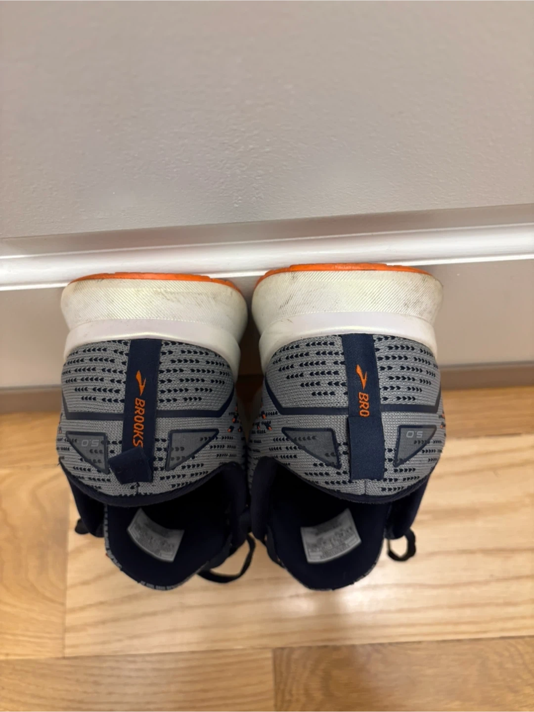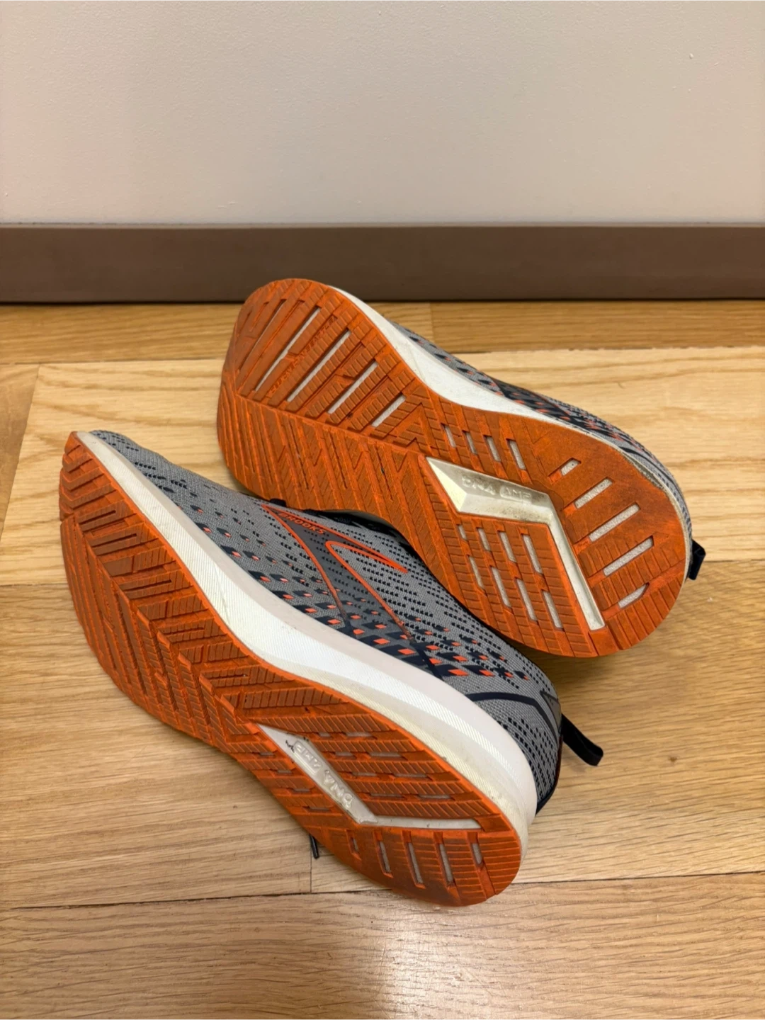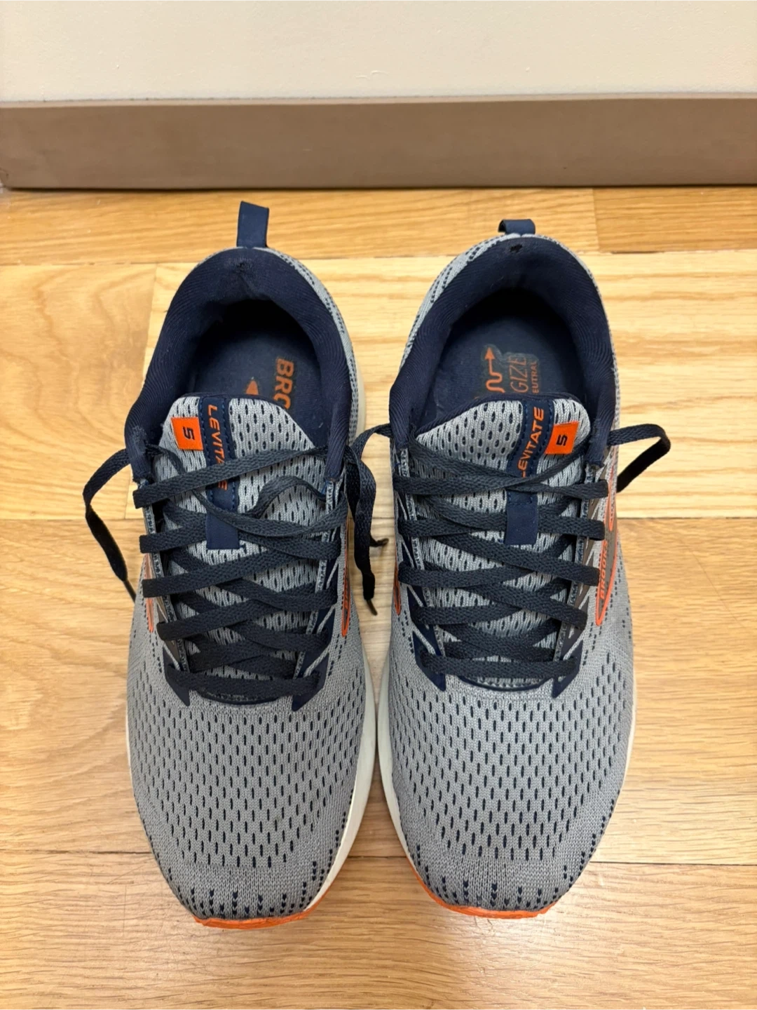 Selling a pair of Brooks Levitate 5 running shoes! They are gray with orange accents and in good condition. Perfect for running or everyday wear