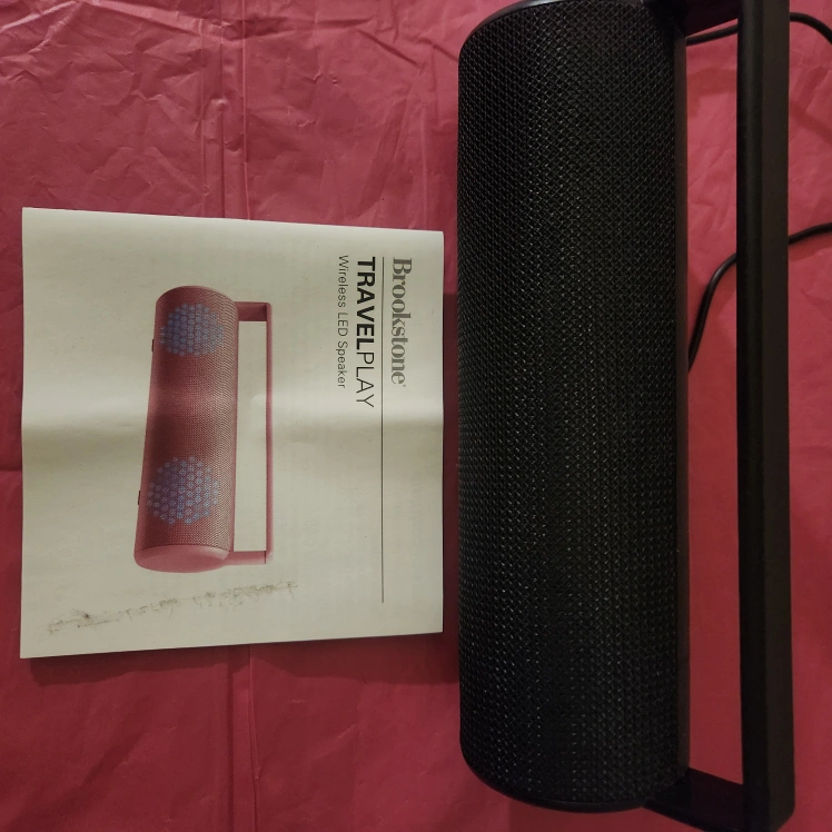 Selling a Brookstone TRAVELPLAY wireless LED speaker. This speaker is perfect for on-the-go listening and features fun LED lights