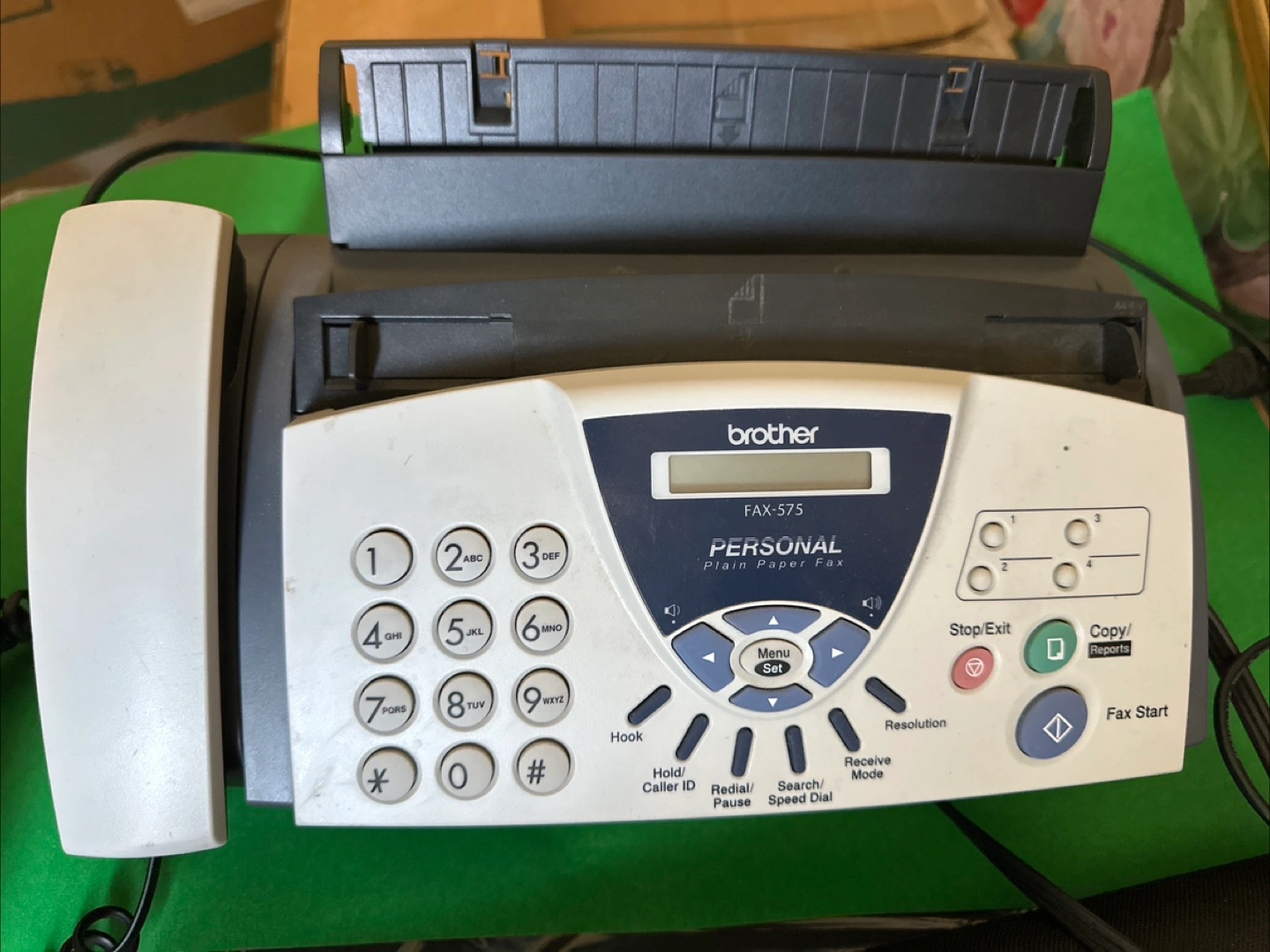 Brother FAX-575 personal plain paper fax. Includes phone and cord. Features include caller ID, redial, speed dial, and more.