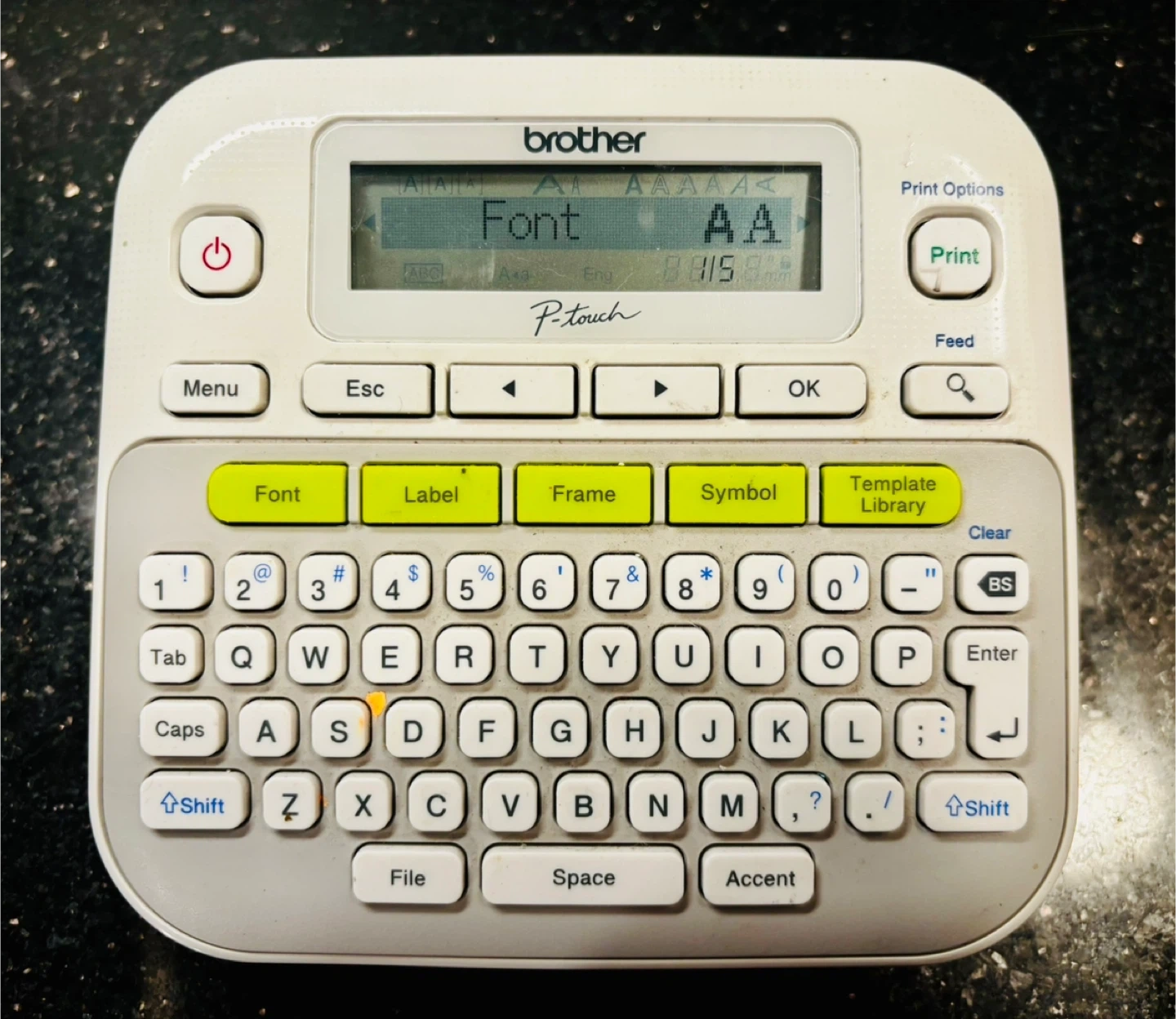 68Selling a Brother P-Touch PT-D210 label maker! It's in good condition and ready to help you organize. It uses TZe tape 0.13-0.47" (3.5-12mm) and requires 1.5Vx6 6W batteries (AAA Alkaline LR03 / Ni-MH HR03). **LABEL TAPE NOT INCLUDED**