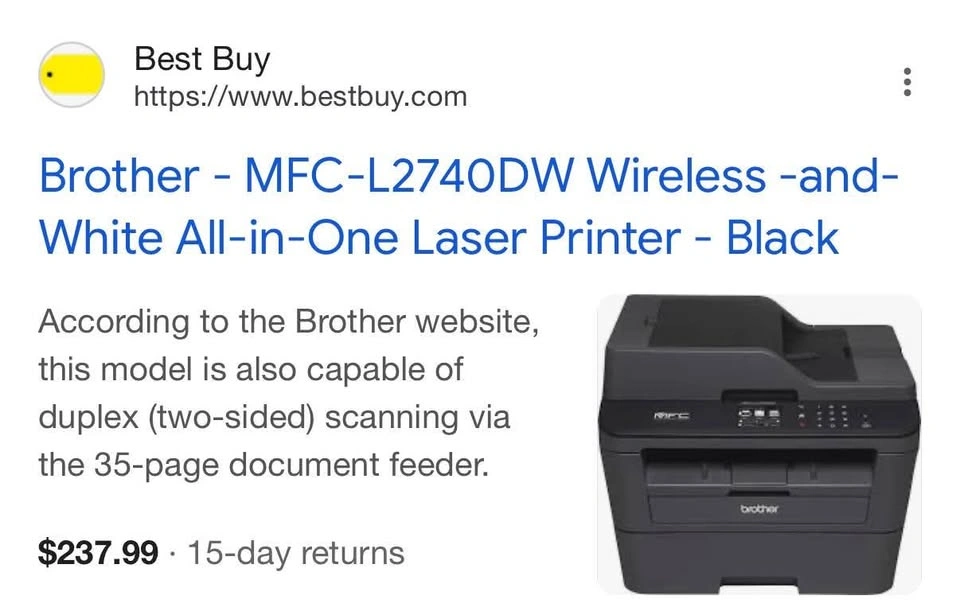Brother laser printer, scanner, copier. Model MFC L2740DW