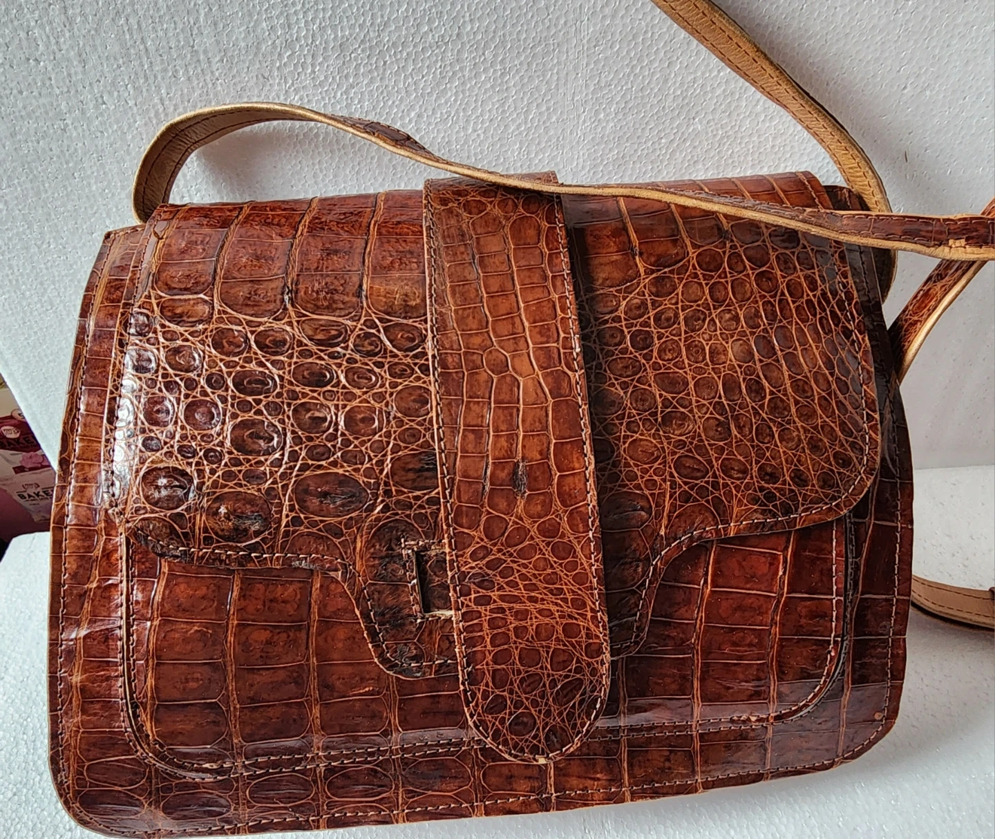 97Brown shoulder bag with a unique crocodile embossed leather pattern. It's a beautiful piece that will add a touch of elegance to any outfit $55 BUYER HAS TO PICK UP CASH ONLY