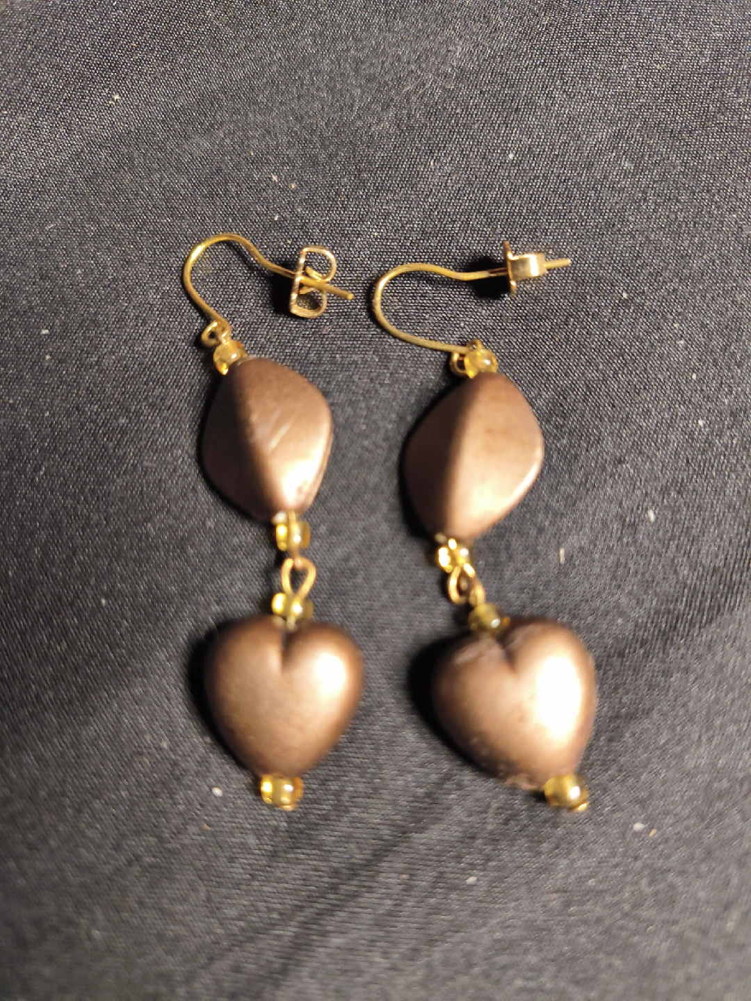 Cute brown heart drop earrings with gold-tone hardware. These are in great condition and would make a lovely addition to any jewelry collection!