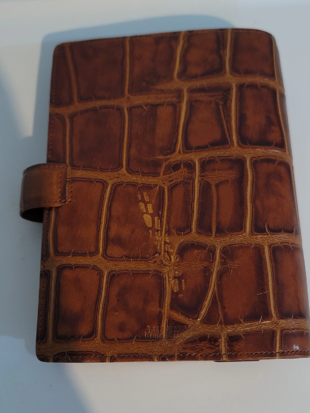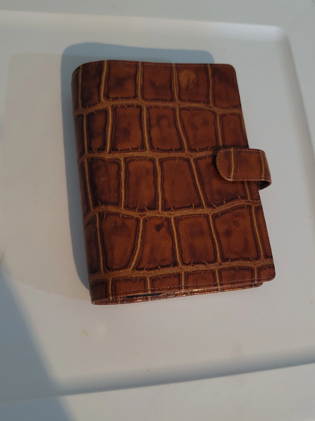18brown leather daily planner! It has a croc pattern on the outside and a snap closure. Inside there are rings to hold the pages in place and several pockets for storage pick up in Merrick Ny CASH ONLY