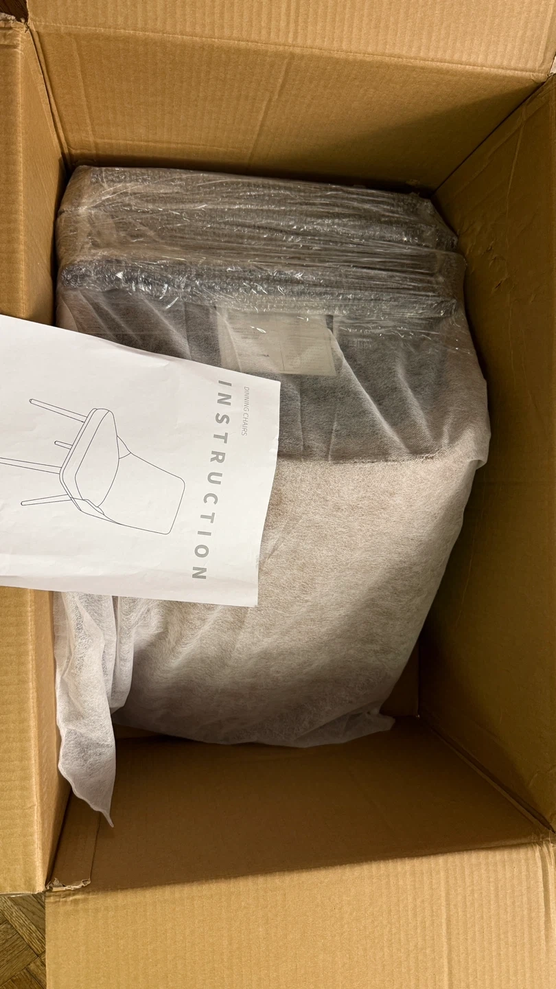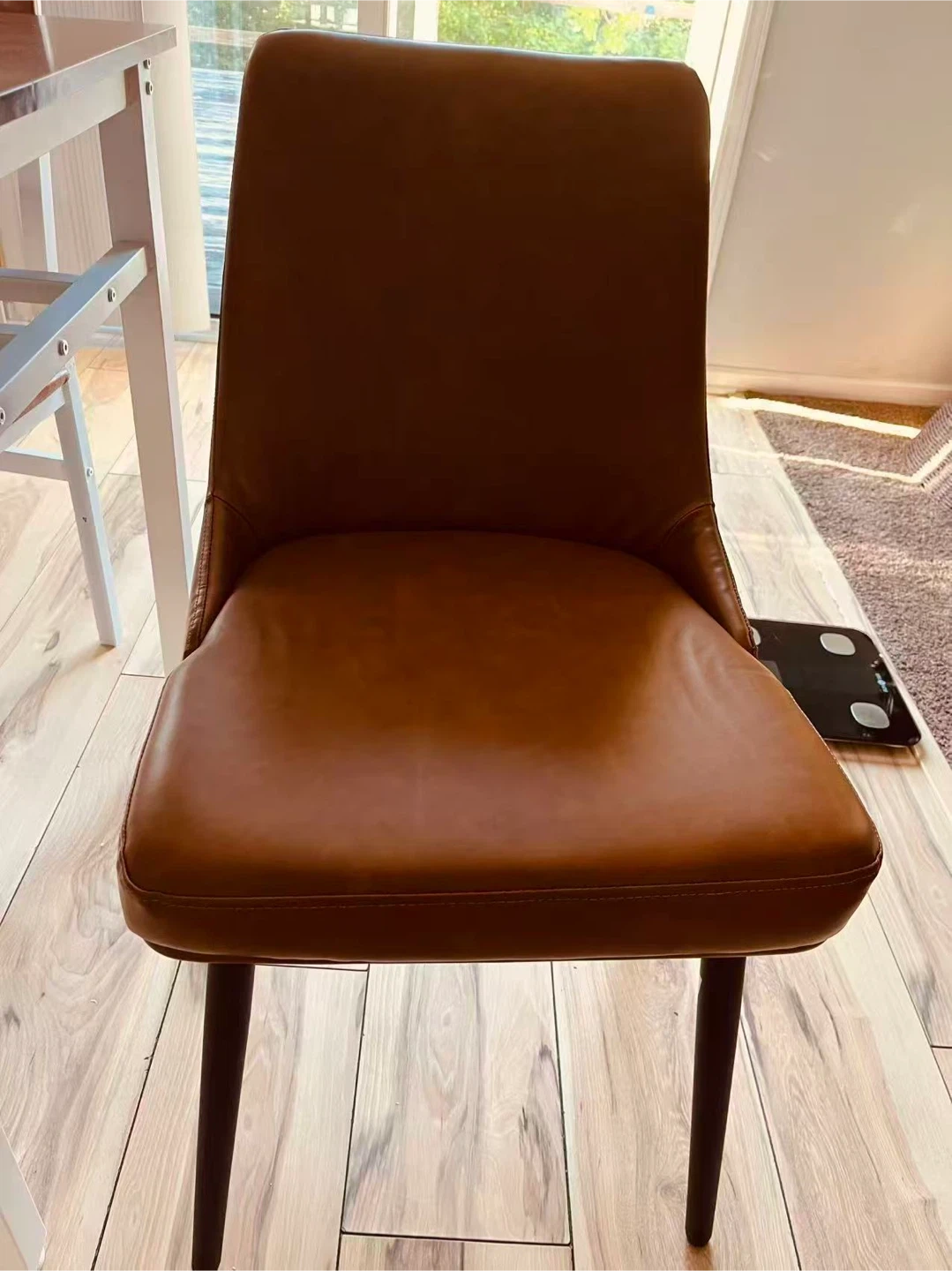 154I'm selling a brand new brown leather dining chair that's still in its original packaging! The chair features a comfortable leather seat and a stylish design that would look great in any dining room. The box and instructions are included