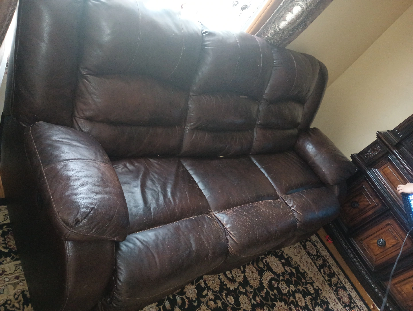 Selling a comfortable brown leather reclining sectional sofa. It's in good condition and perfect for a living room or entertainment space. The sectional design offers plenty of seating for family and friends