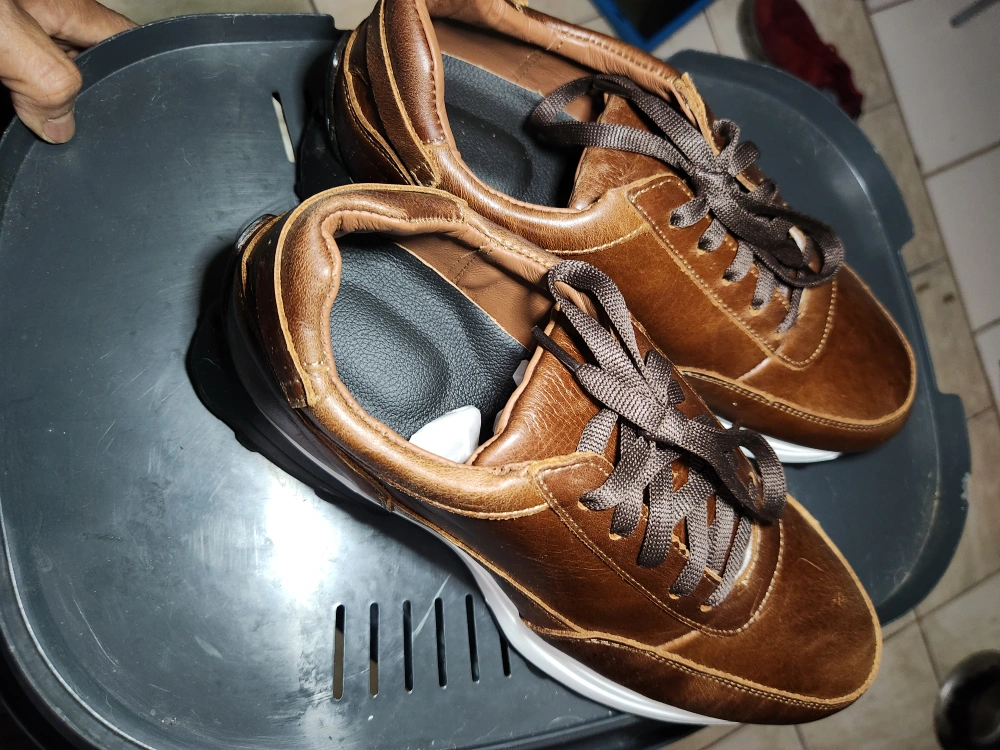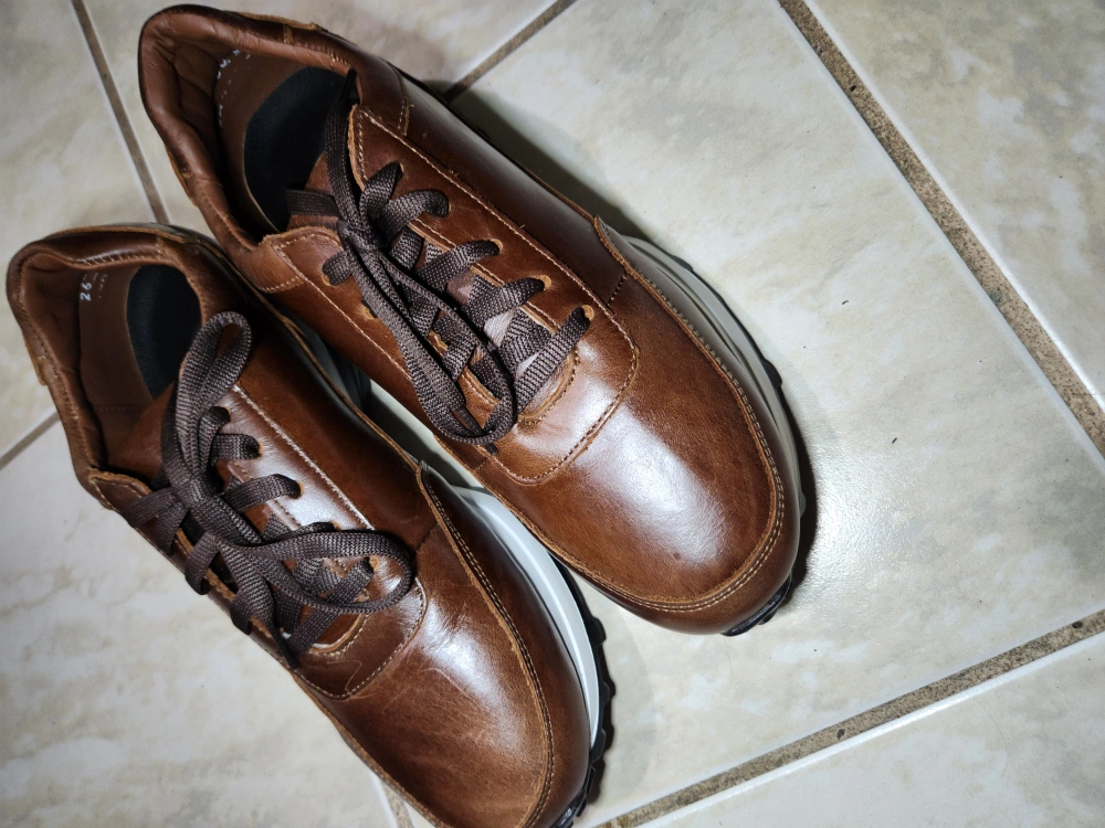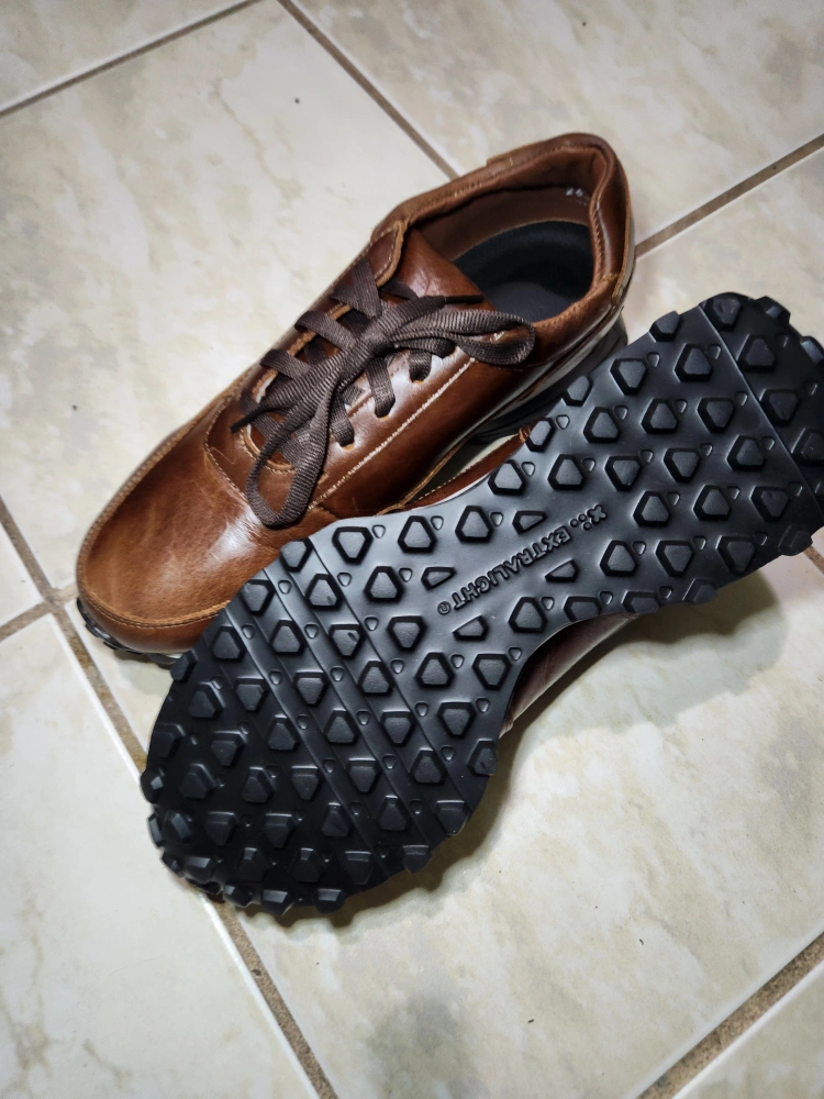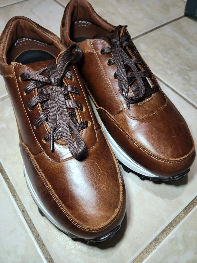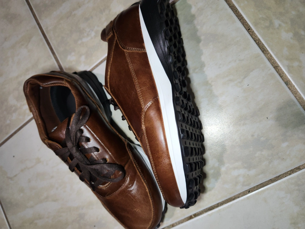 Estoy ofreciendo estas zapatillas de cuero marrón. Presentan cordones marrones y una suela blanca. Puedes usarlos todo el día y aún así estar cómodo. Cuero 100% real por dentro y por fuera I am offering these brown leather shoes. They have brown cords and a white sole. You can use them all day and still be comfortable. 100% real leather inside and out.
