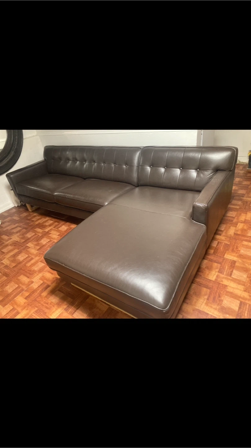 Selling a brown leather sofa. It's in good condition and would be a great addition to any living room. The sofa is comfortable and stylish, perfect for relaxing or entertaining guests