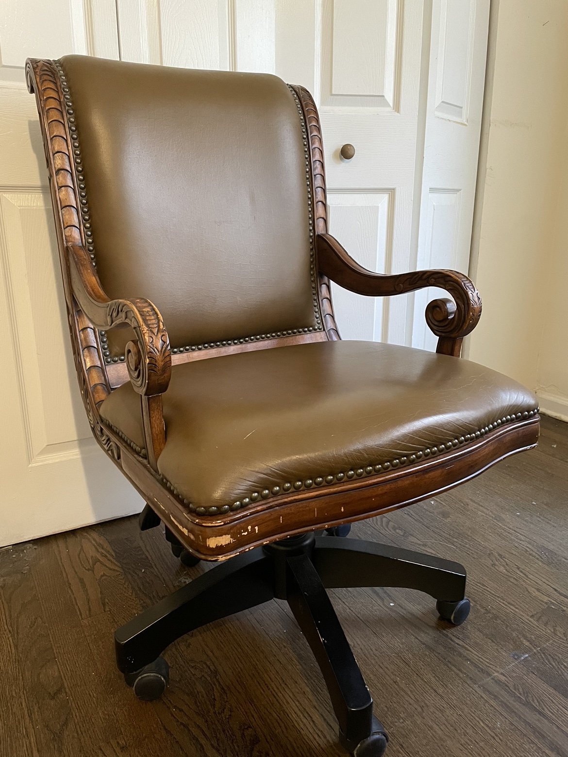 Olive Green Velvet Chair w/ Gold Legs