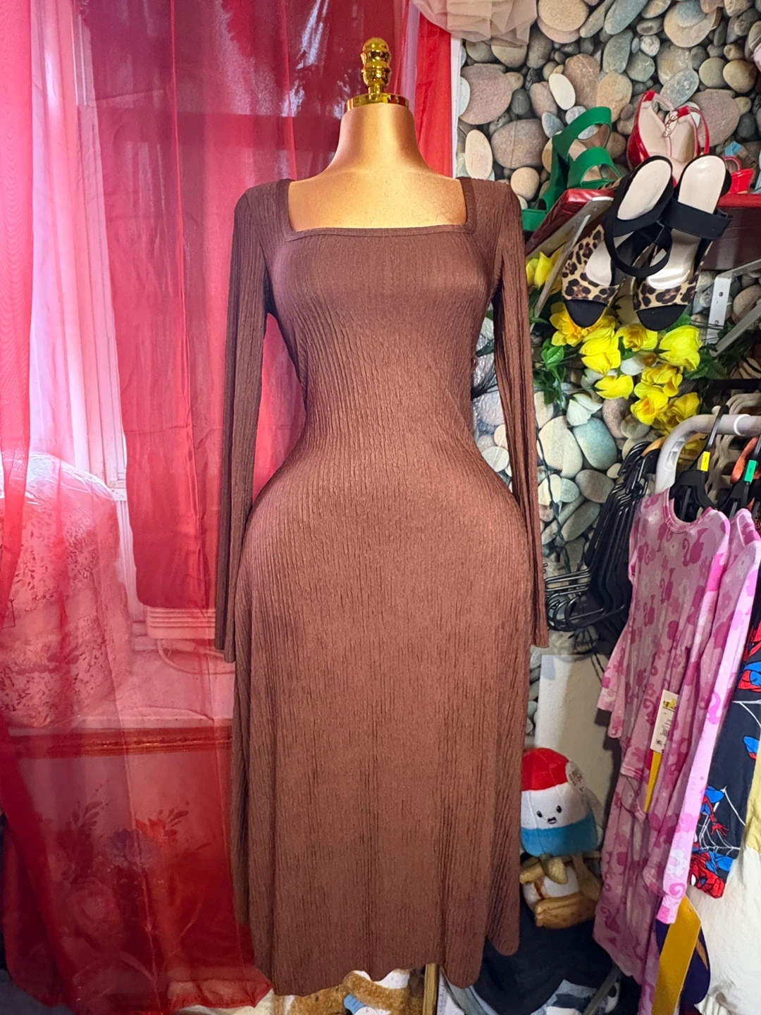 153A stylish brown long sleeve dress! Perfect for any occasion. It's in great condition and ready for a new home