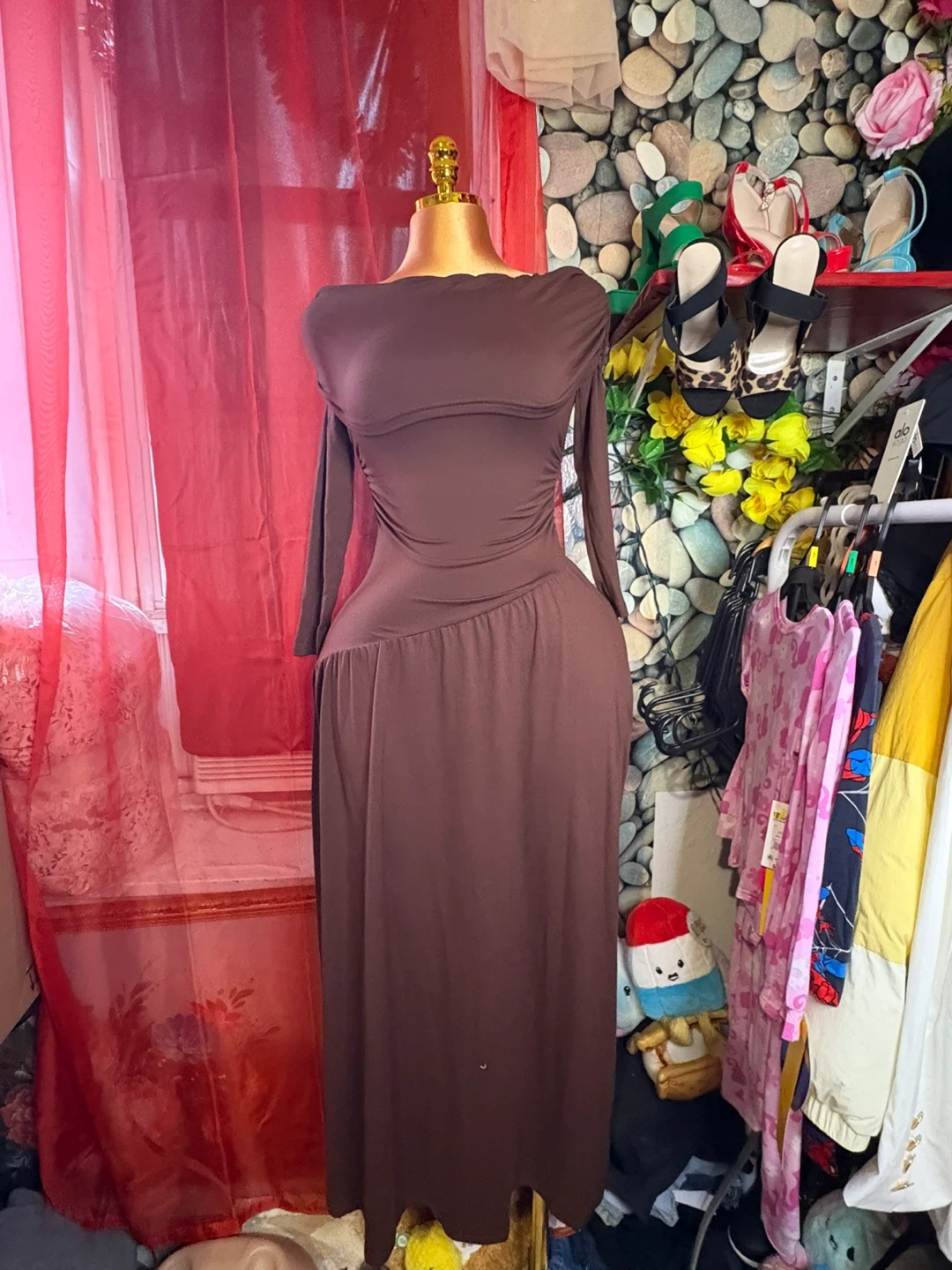 153Selling a brown long-sleeve maxi dress. It's a beautiful dress that would be great for a special occasion or just to wear out