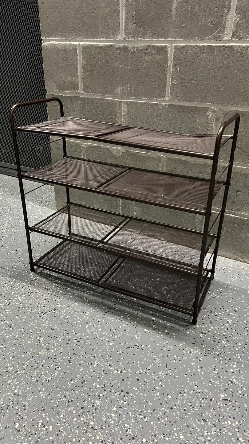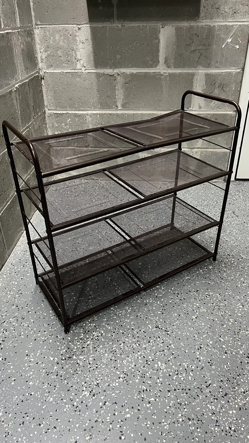 814 Tier Shoe Rack. One bent spot on top, but it’s completely hidden once shoes are placed on it.