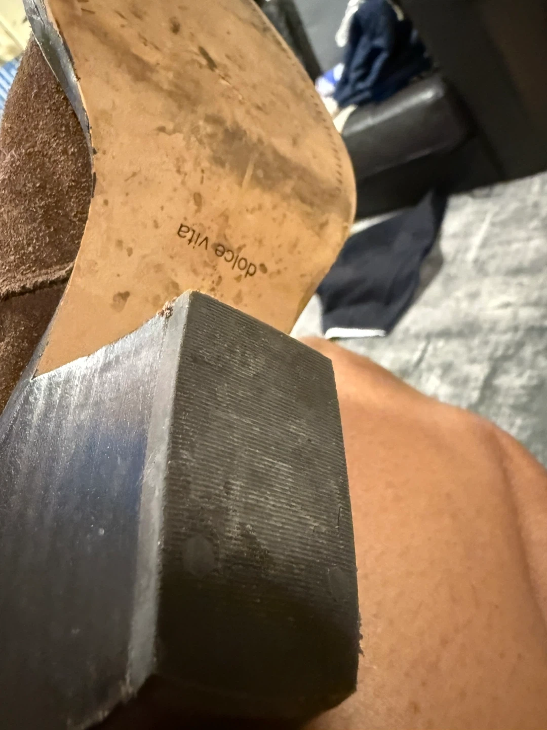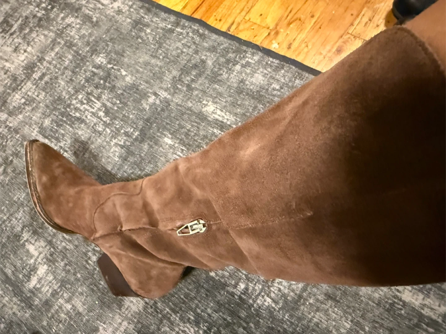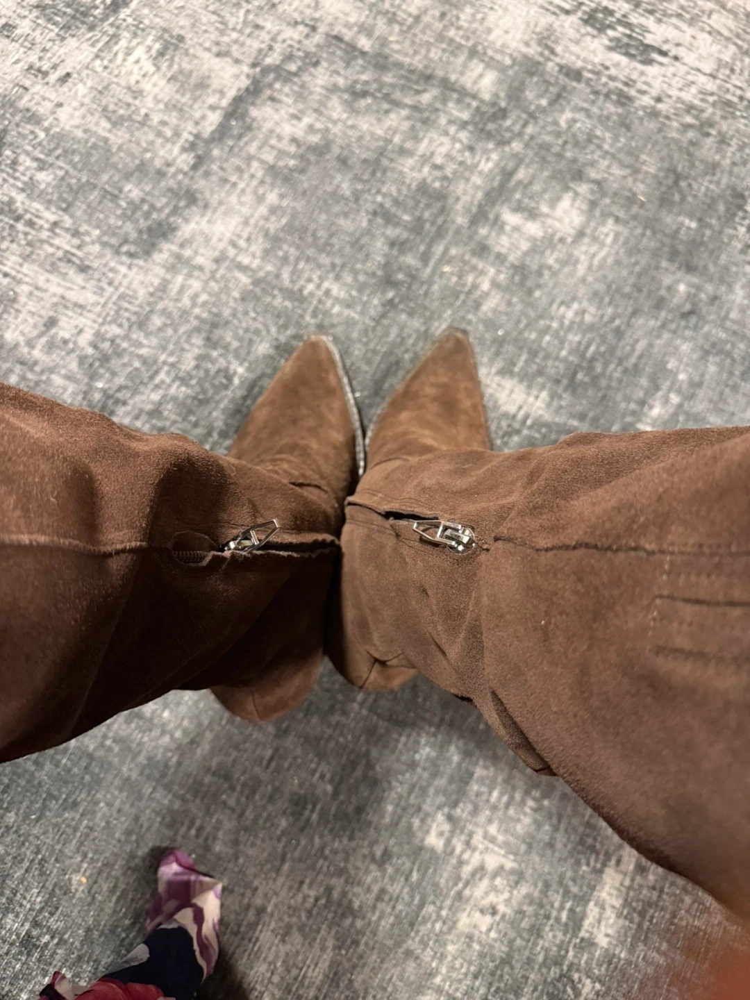 1000+Selling a pair of brown suede boots in size 8.5. They have a stylish look and are made of suede material. There are some signs of wear on the tips of the toes, as shown in the photos.