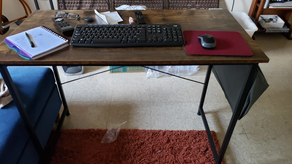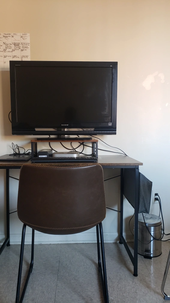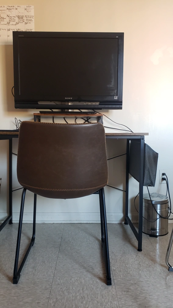 Selling a used brown wooden desk with a black metal frame along with a soft leather chair. It's in great condition and perfect for a home office or study space. Has a magazine rack on the side. Brown Minimalist Work desk - Wood and metal, with utility pouch - Leather seat - Like New condition - 36”x30”x~20” {$125 total value} Your price, for both = $65 _________ I'm actually selling an apartment's worth of Furniture, appliances, decor and accessories. I’m looking to have all OFFERED items picked up by ONE tenant, ideally. Suggested to use a Sprinter Van or 10ft truck for a One-trip haul if grabbing everything. SERIOUS BUYERS ONLY Must contact me for access.