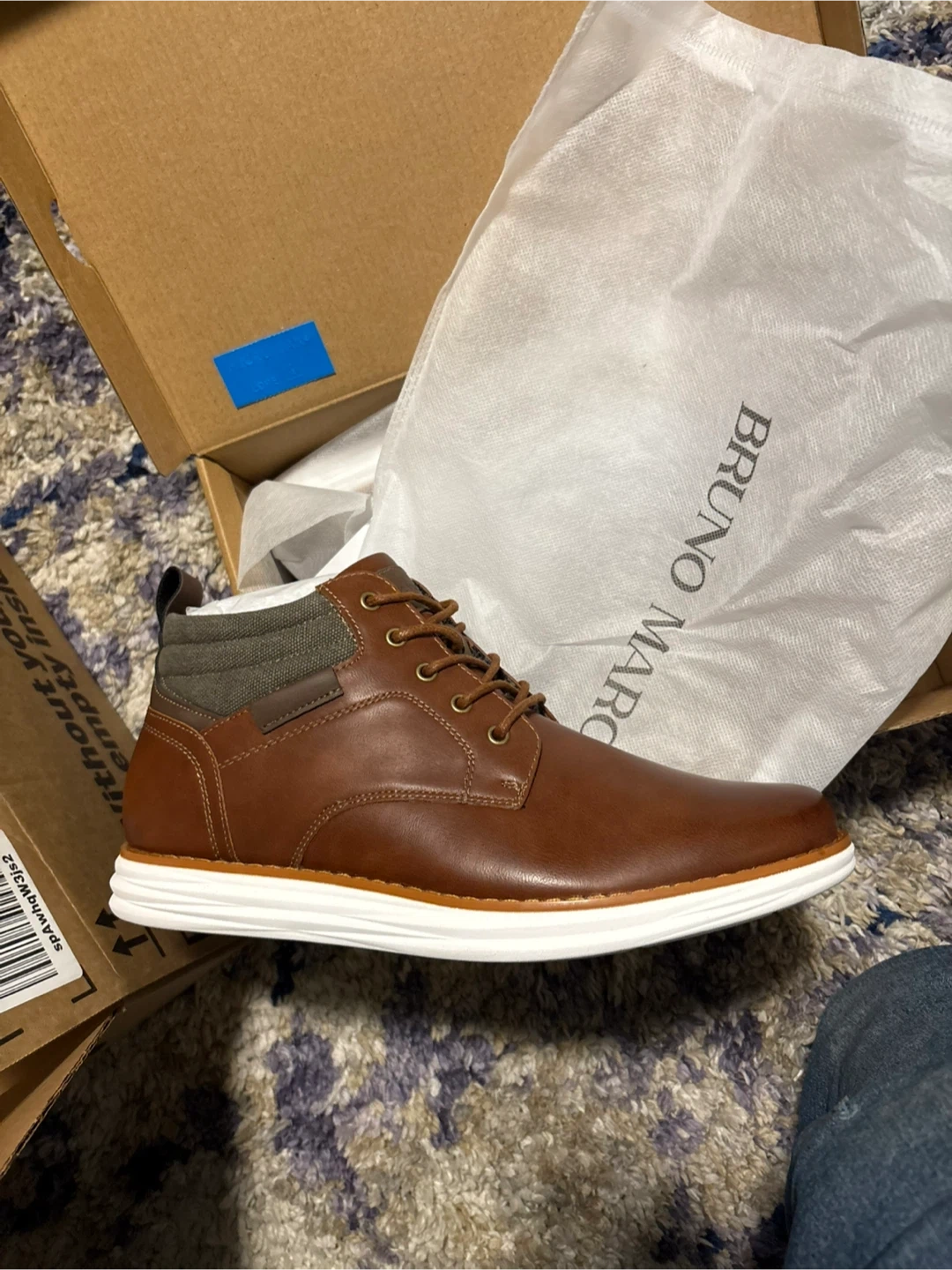 Selling a pair of Bruno Marc Grand-High boots in tan. These are a US size 9.5. Includes the original box!