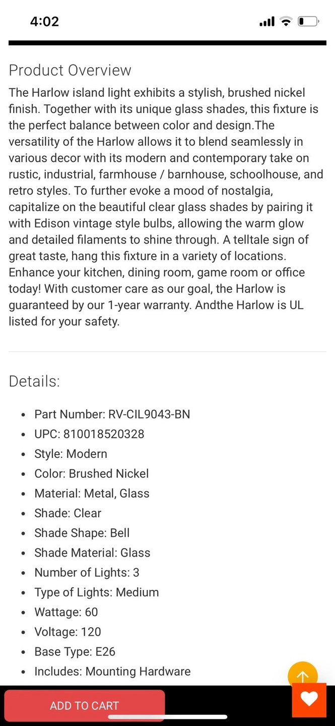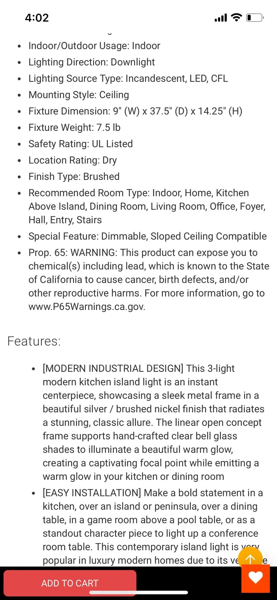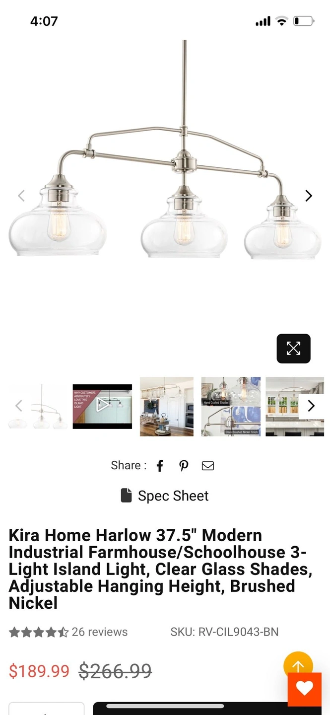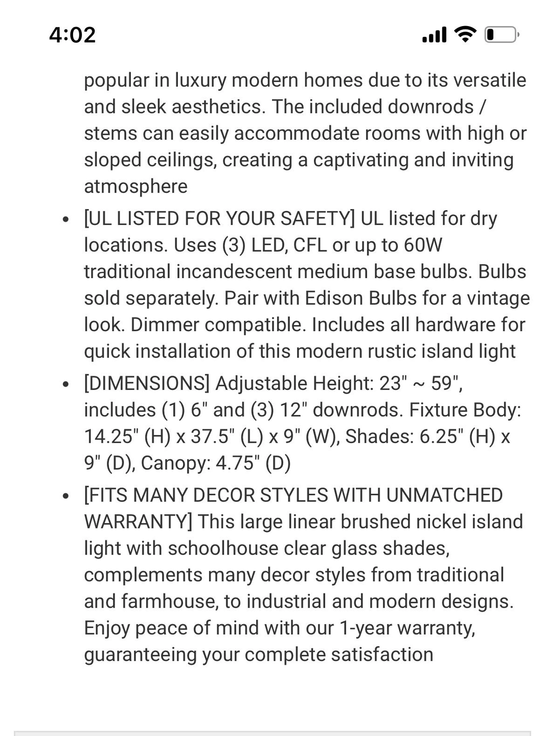 60Store return - new inbox light fixture Features: Dimmable, Adjustable Color: Nickel Style: Industrial Type: Ceiling light fixture Brand: Kira Home