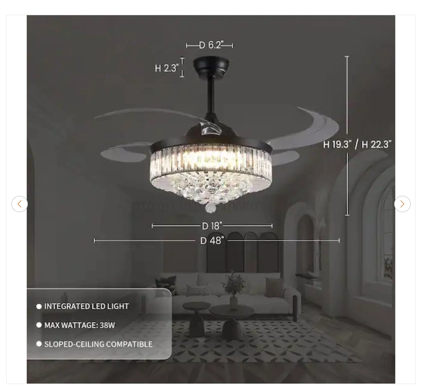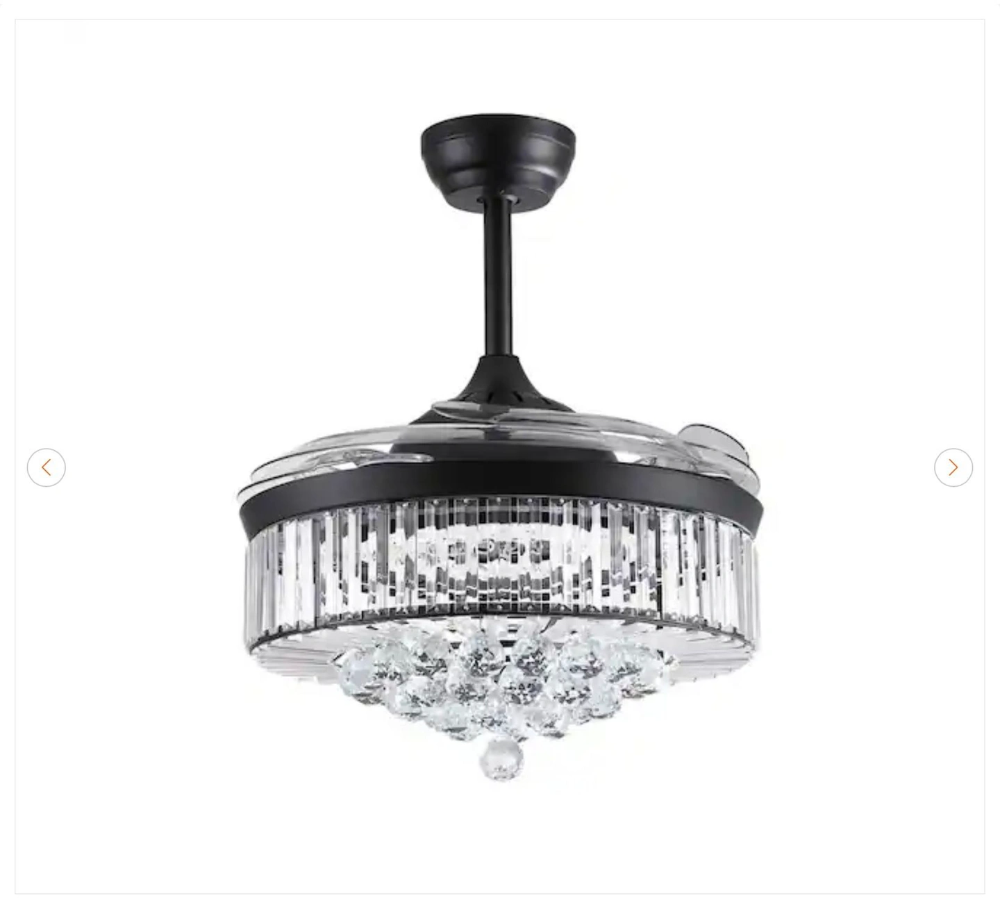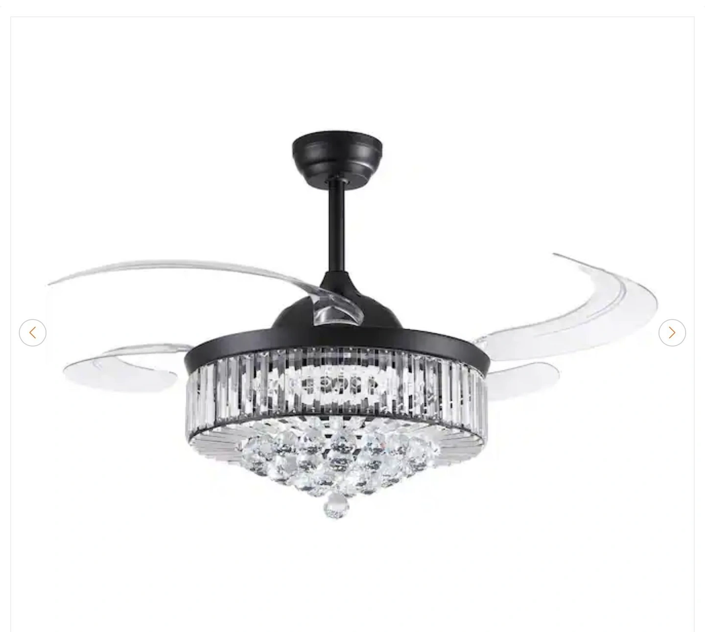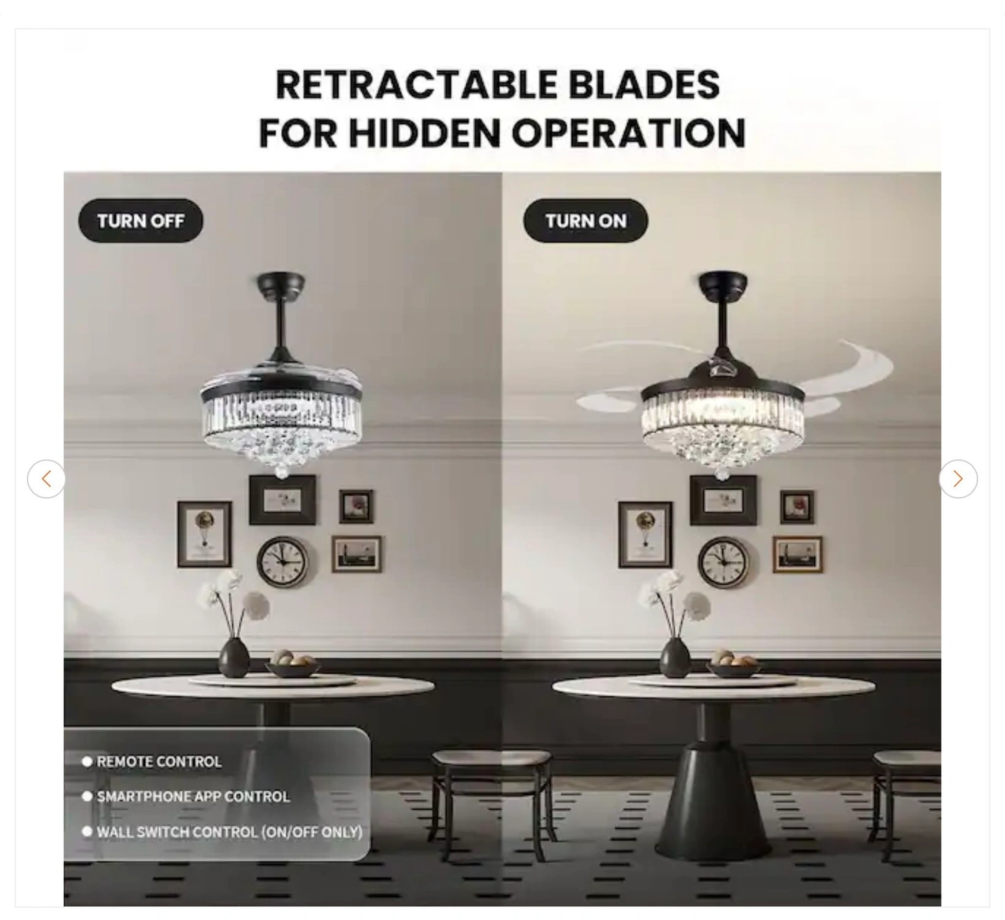 48 in. Black Smart Retractable Crystal Ceiling Fan w/ LED Light