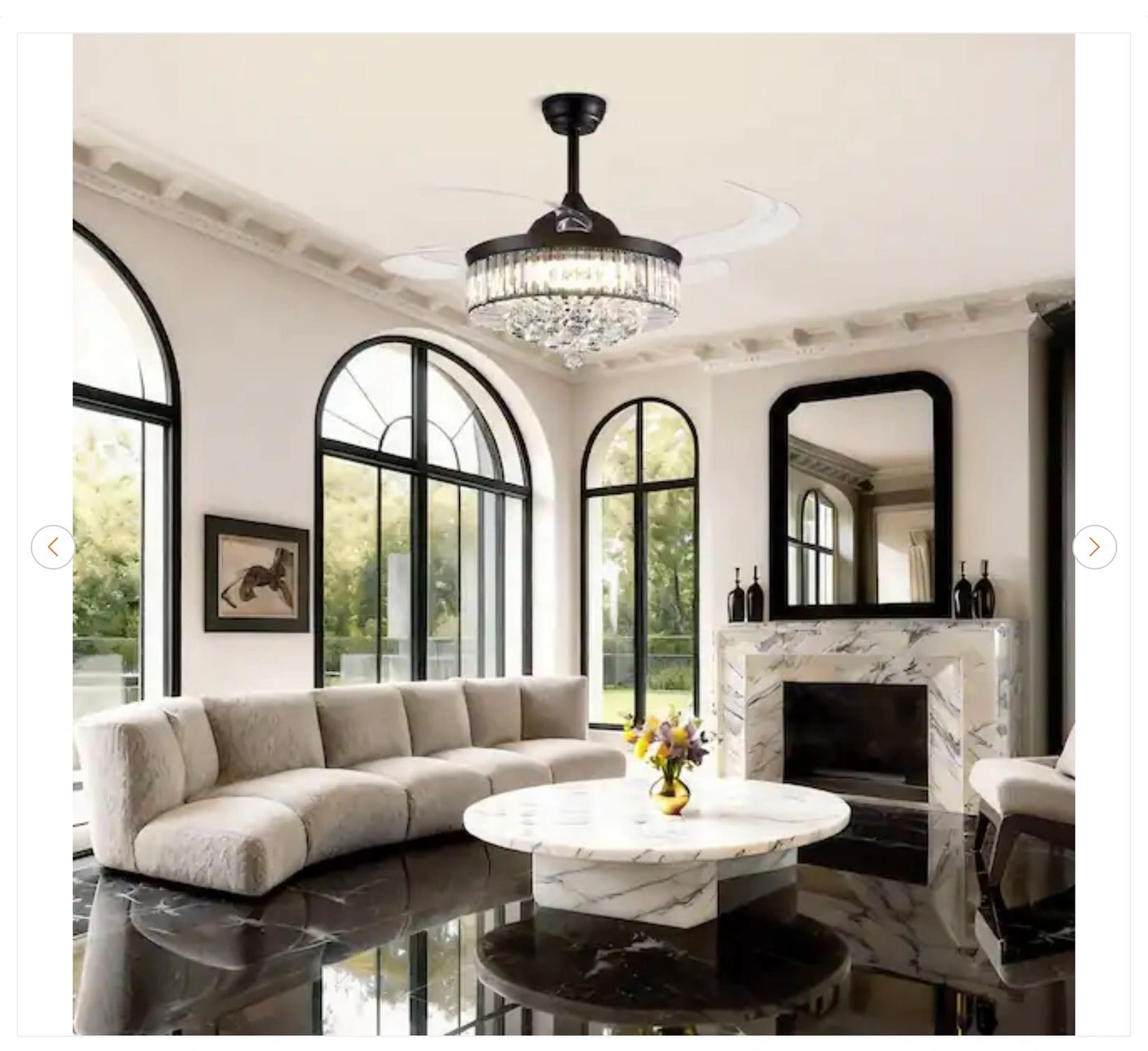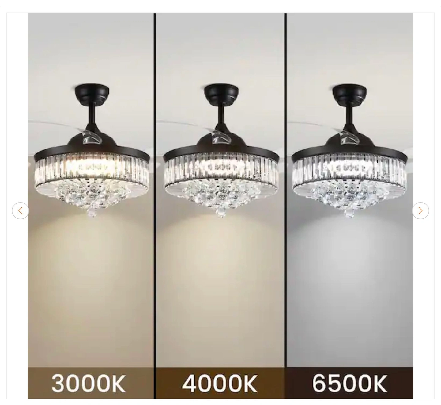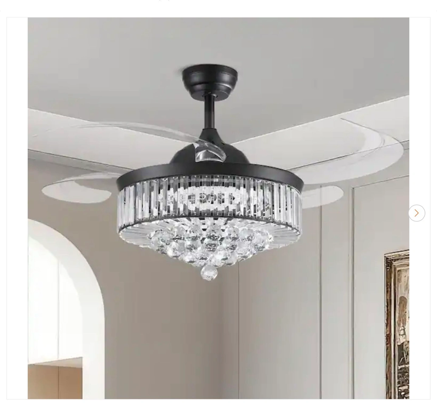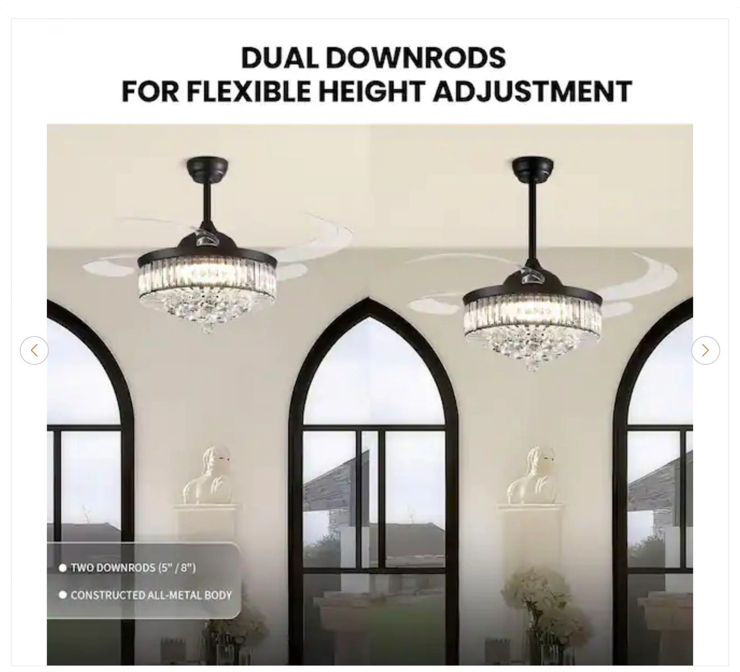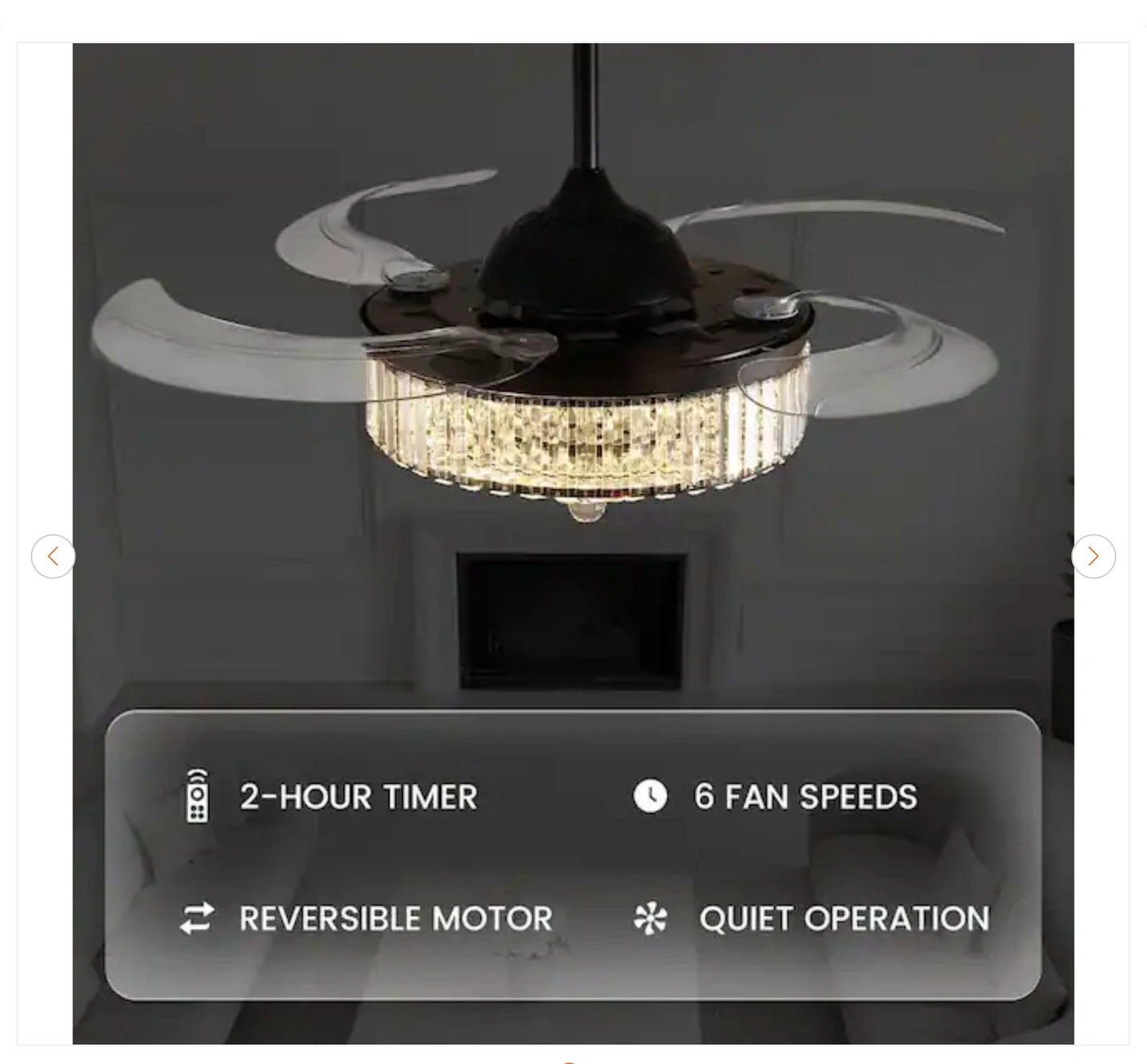 48 in. Black Smart Retractable Crystal Ceiling Fan w/ LED Light