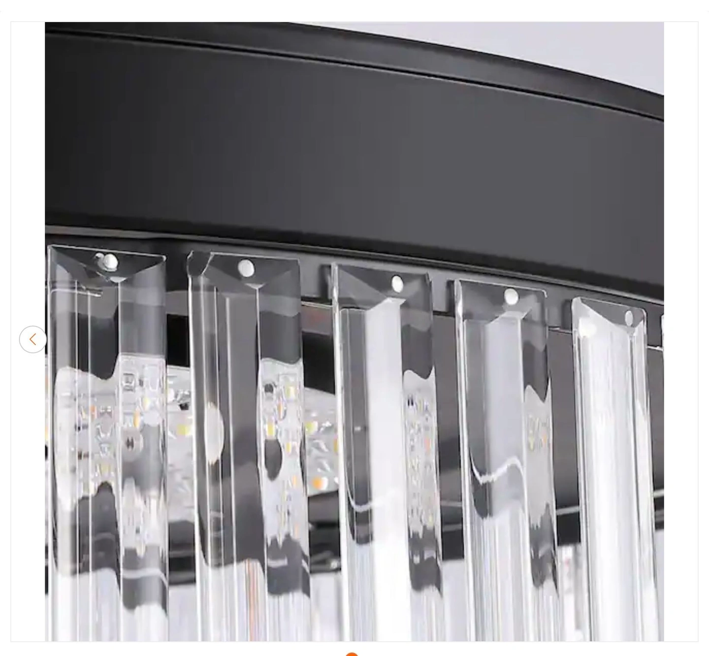 Brand new 48 in. indoor modern black smart retractable crystal ceiling fan with LED light and remote. Downrod mount chandelier fan.