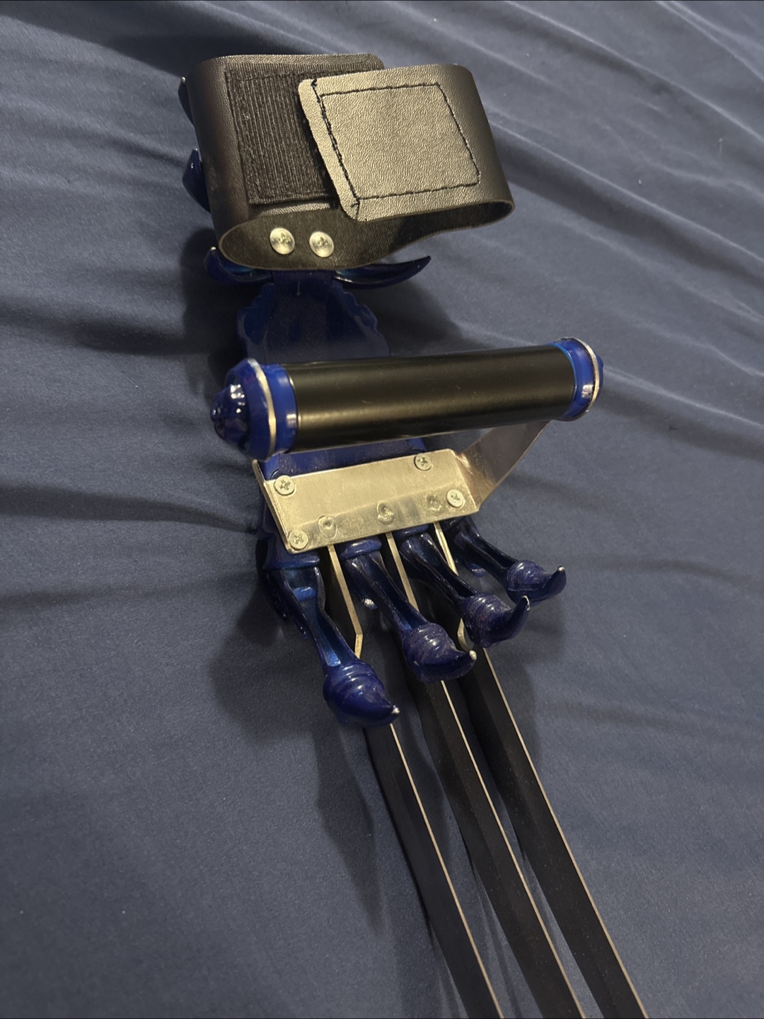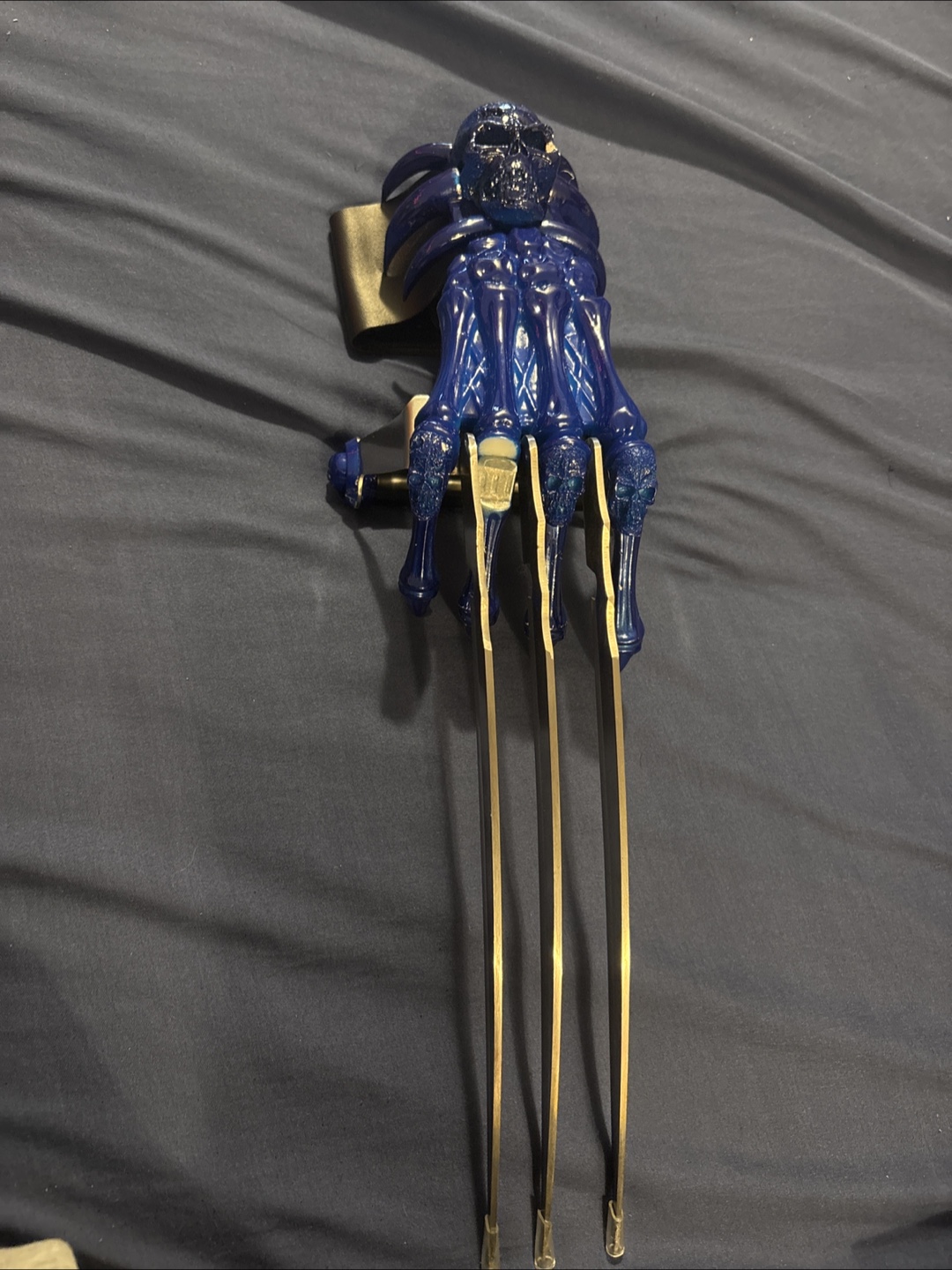 Selling a pair of Wolverine claws, perfect for cosplay or display! They appear to be blue and black with metal claws. Great for any Marvel fan!
