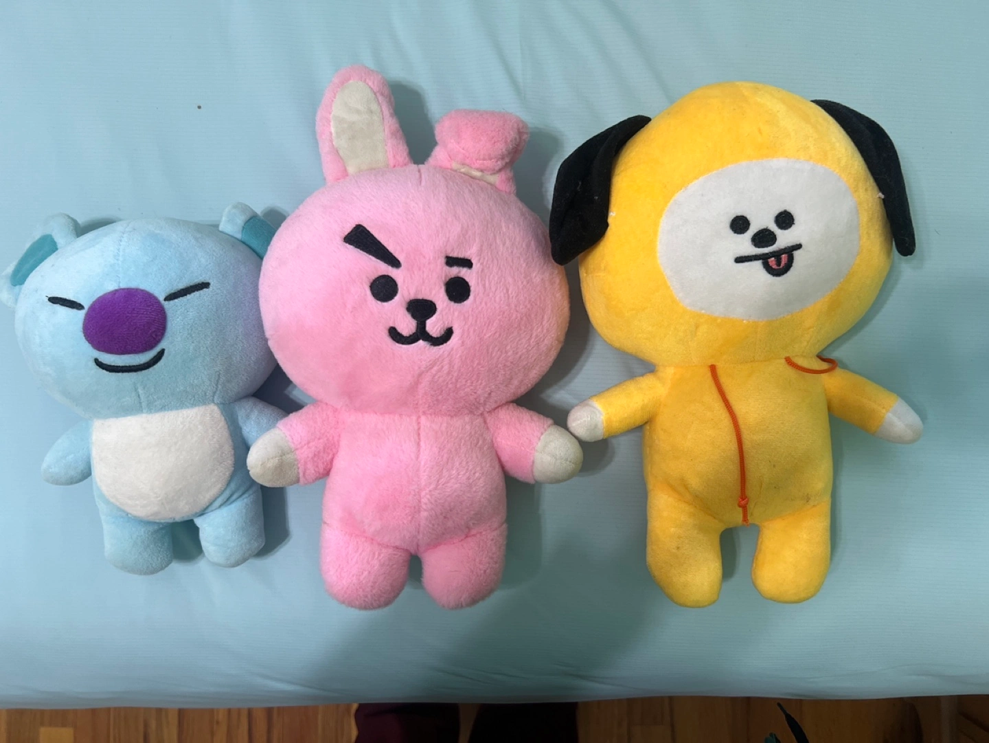 65Adorable BT21 plush toys. Three characters: Cooky, RJ, and Chimmy. Soft and cuddly. Great for kids or collectors.