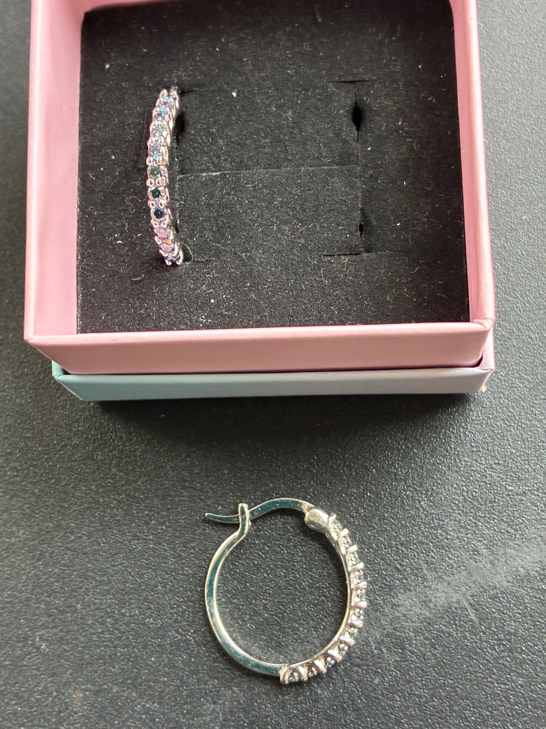 Moissanite Hoop Earrings with Rainbow Blue Gems
