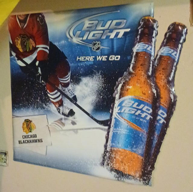 Selling a Bud Light poster featuring the Chicago Blackhawks NHL team. It would look great in a game room or bar!