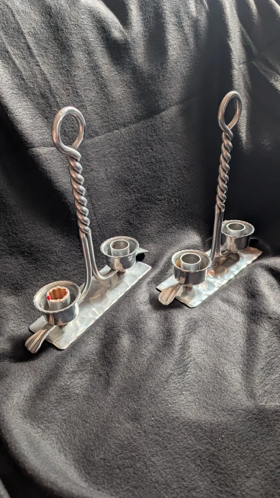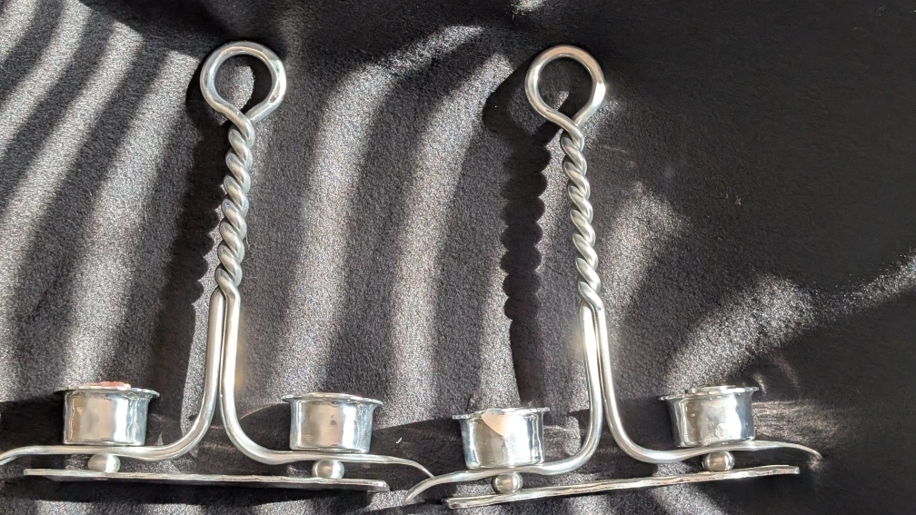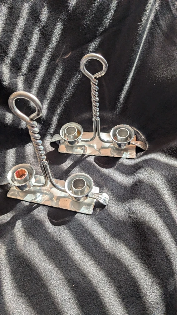 10Selling a pair of Buenilum Hand Wrought candlestick holders. They have a unique twisted design and are in good condition. Perfect for adding a touch of vintage charm to your home!
