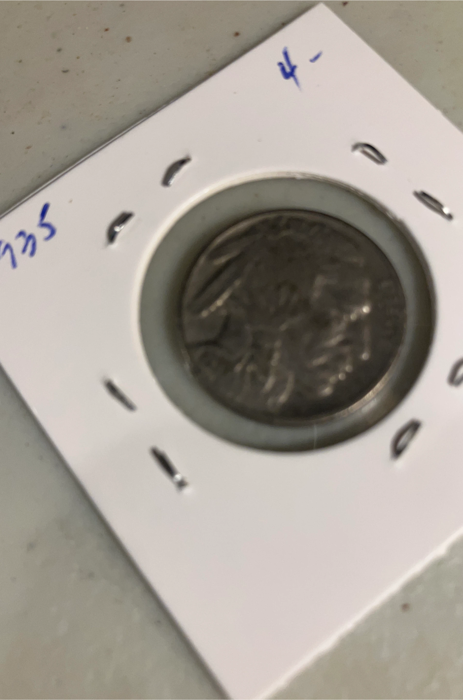 Here is a Buffalo Nickel coin in what appears to be a protective holder. It has the number '935' written on the holder