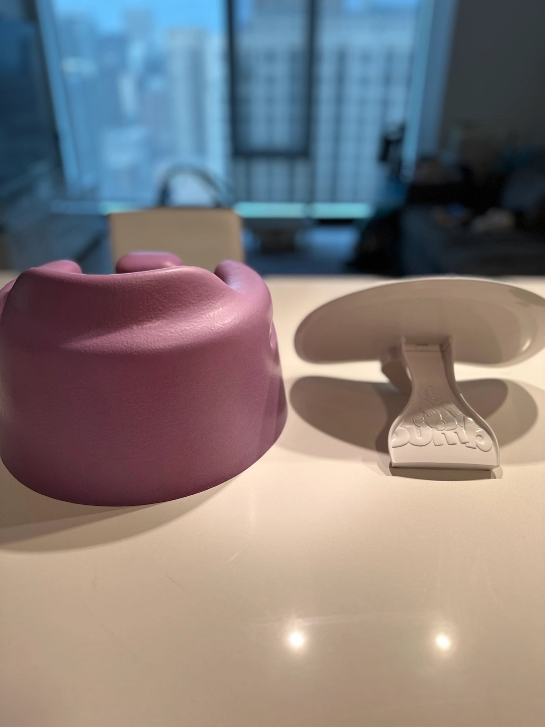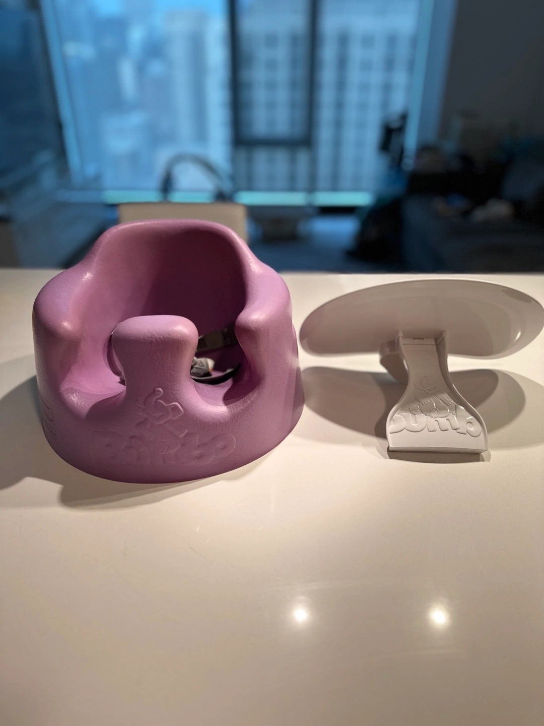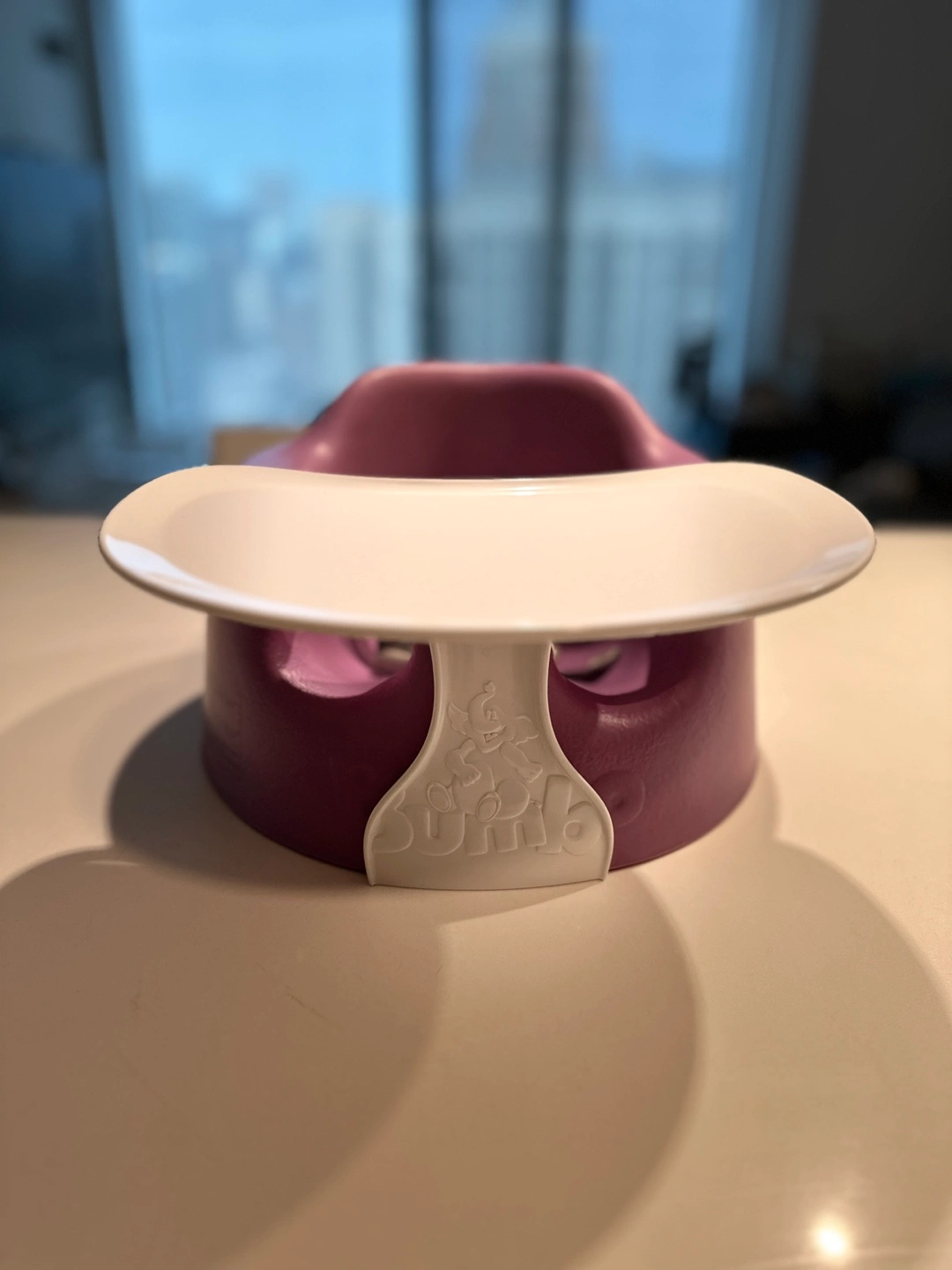 Purple Bumbo Floor Seat with white tray. 3-point harness. Good condition.