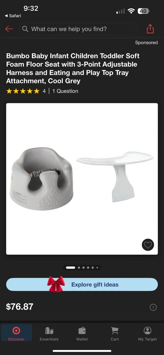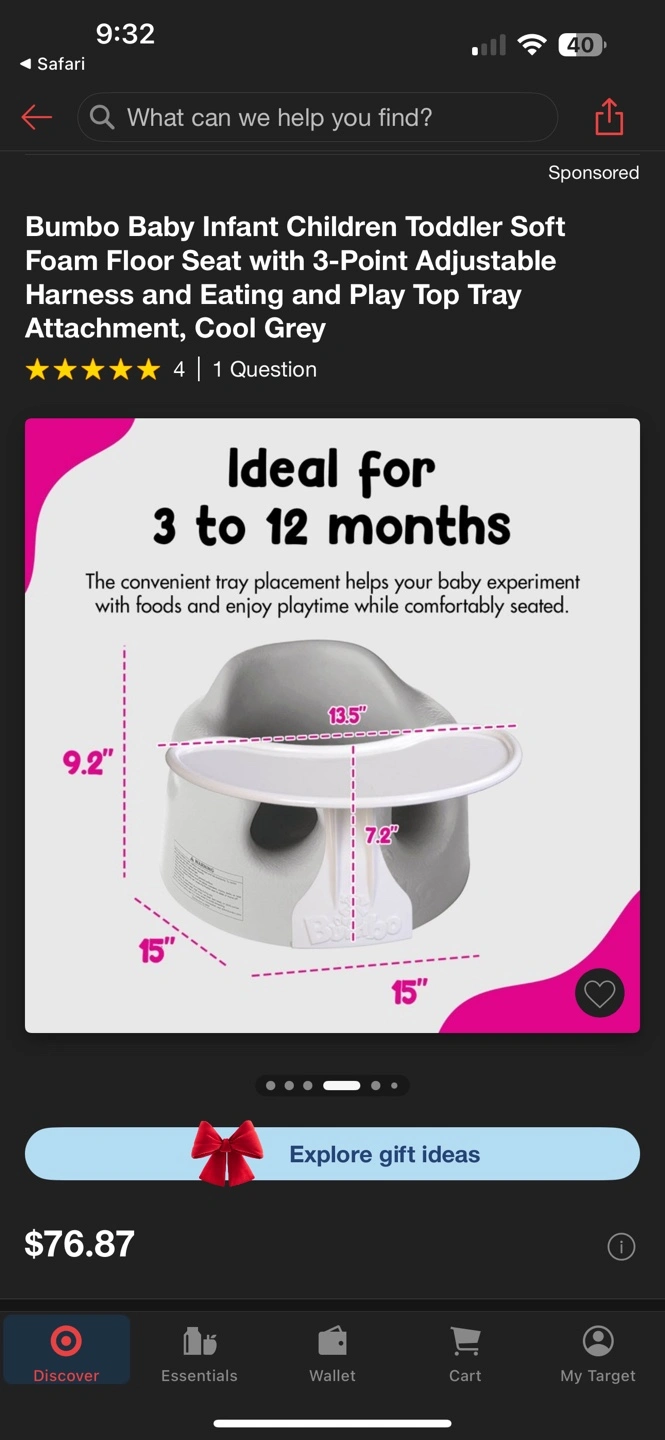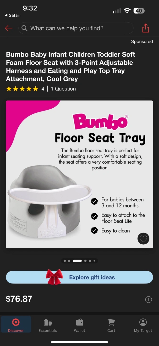 Purple Bumbo Floor Seat with white tray. 3-point harness. Good condition.