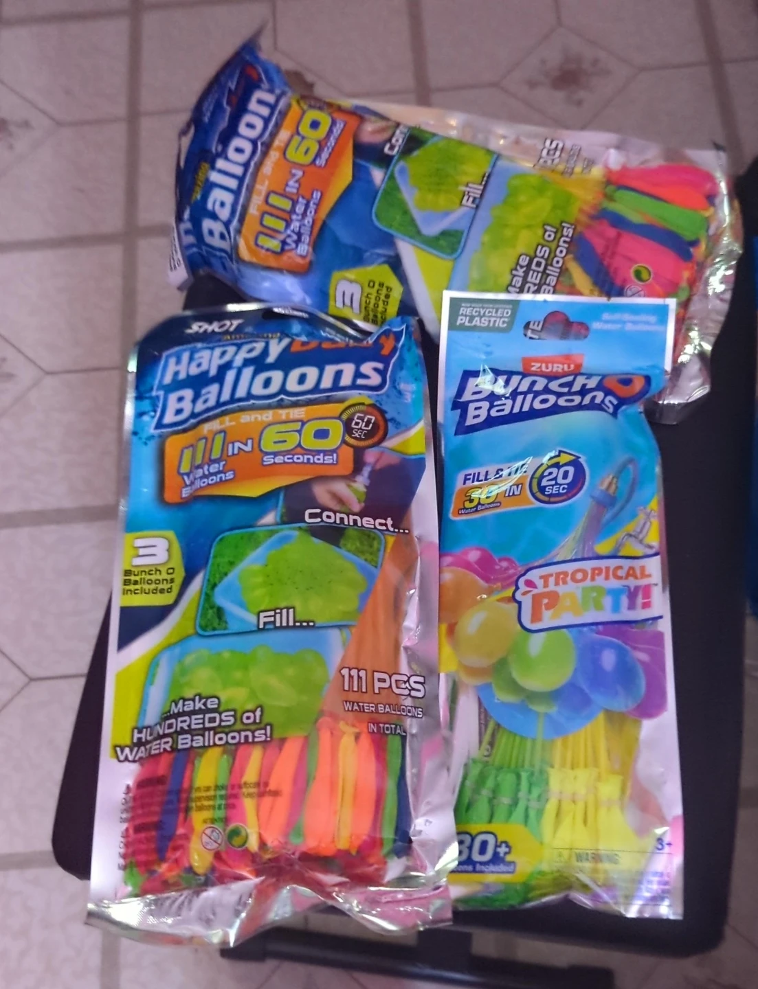 172I'm selling a pack of Bunch O Balloons and Happy Balloons! They both fill with water in seconds, making summer fun easy! One pack makes hundreds of water balloons and the other fills 30+ balloons