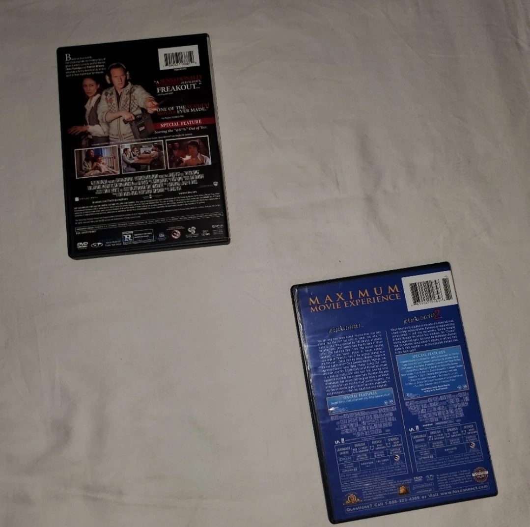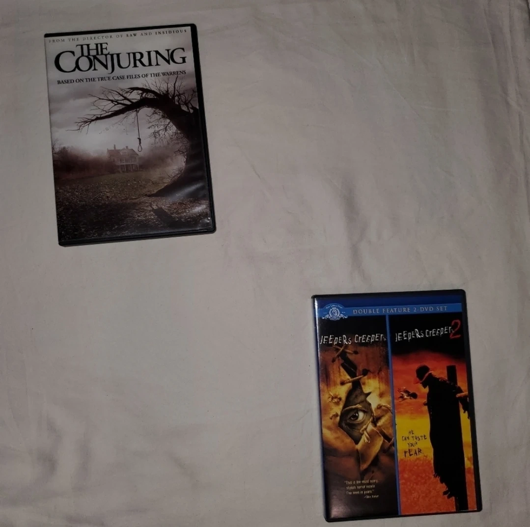 65Two Horror Genre DVD Used Included In The Bundle The Conjuring Rated: R Genre: Horror, Thriller, Supernatural Horror, Mystery and Double Feature 2-DVD Set Jeepers Creepers and Jeepers Creepers 2 Rated: R Genre: Horror, Monster, Teen, Thriller, Mystery