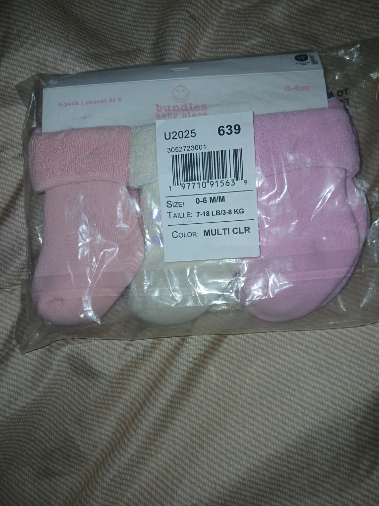Selling a brand new 6-pack of Bundles Baby Place socks! These socks are size 0-6 M/M and come in a multi color design. Perfect for your little one!