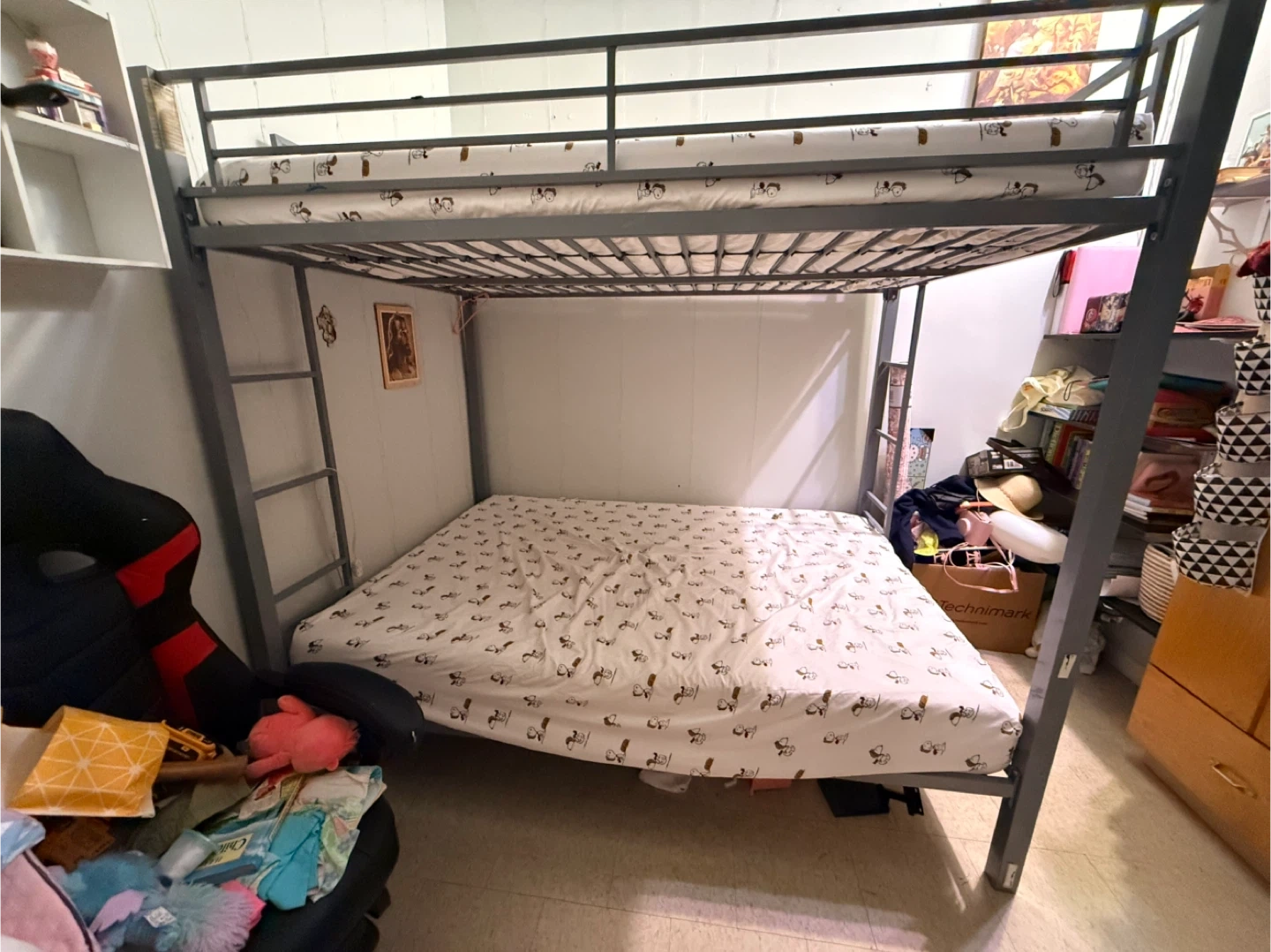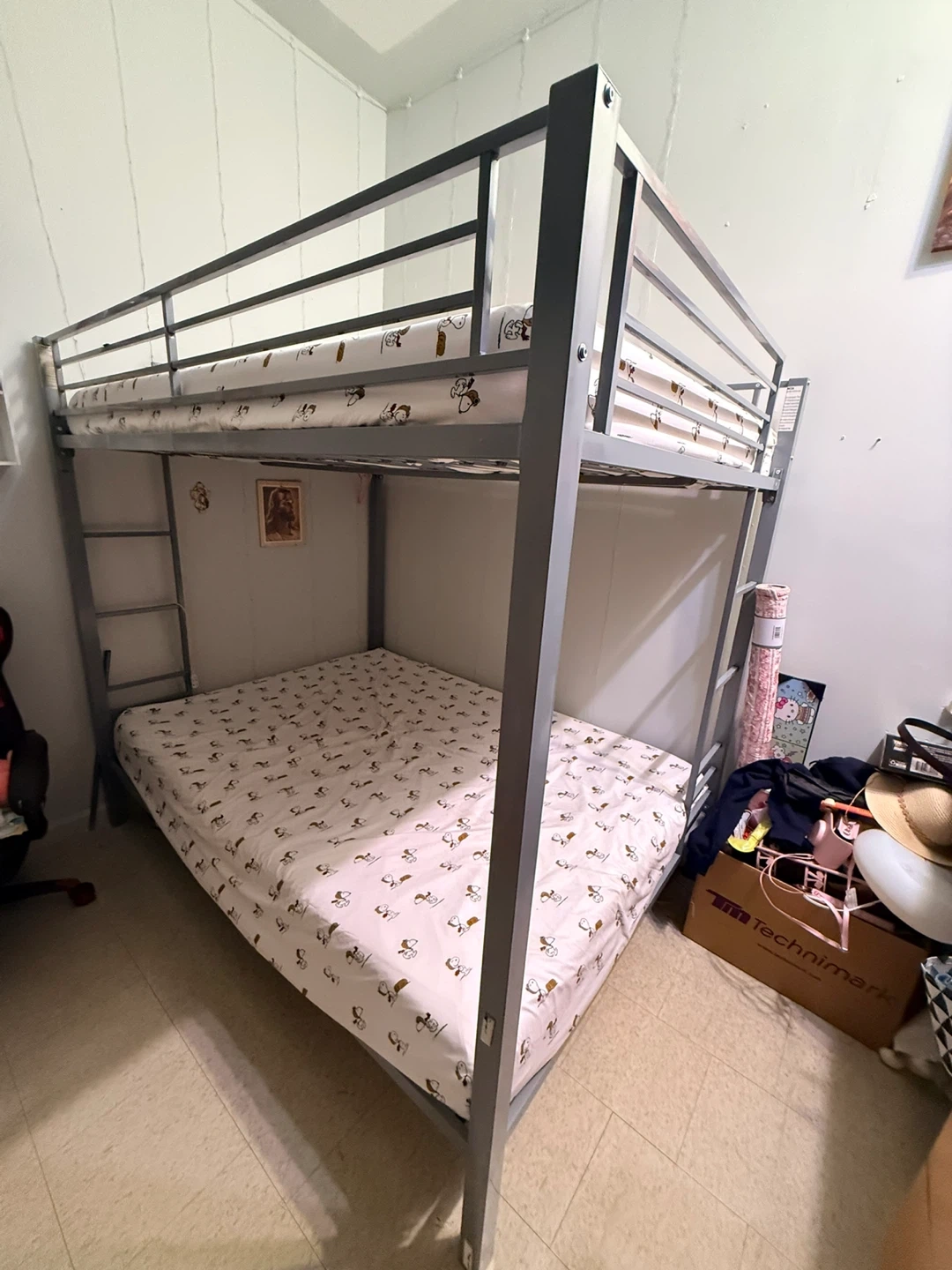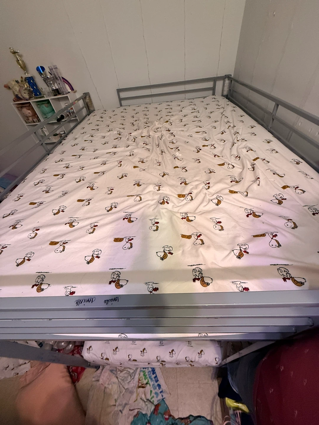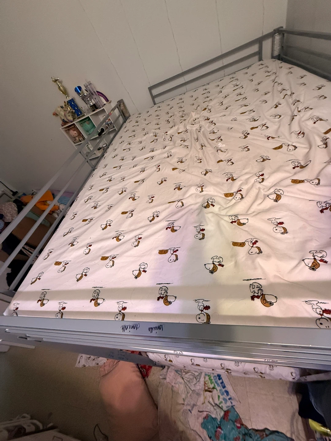 60Selling a bunk bed! It includes a mattress with a Snoopy pattern bedding set. Great for kids or anyone needing to save space