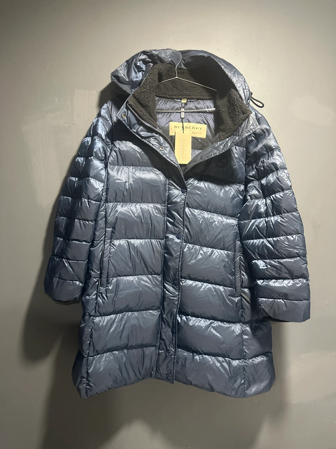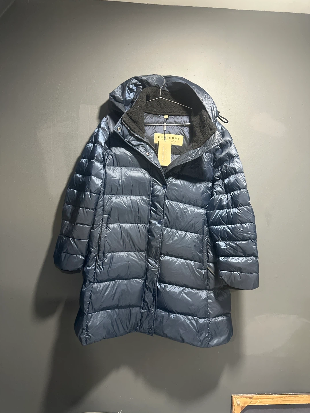 10Selling a Burberry London England down puffer coat in size XL. It's a stylish and warm coat, perfect for colder weather. The coat features a hood and is in great condition. Feel free to reach out if you have any questions!