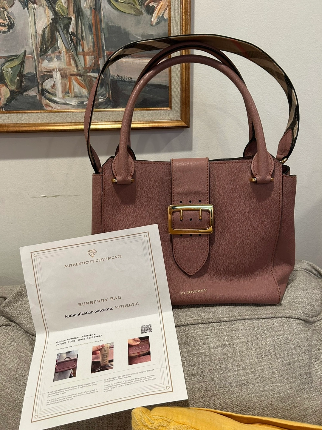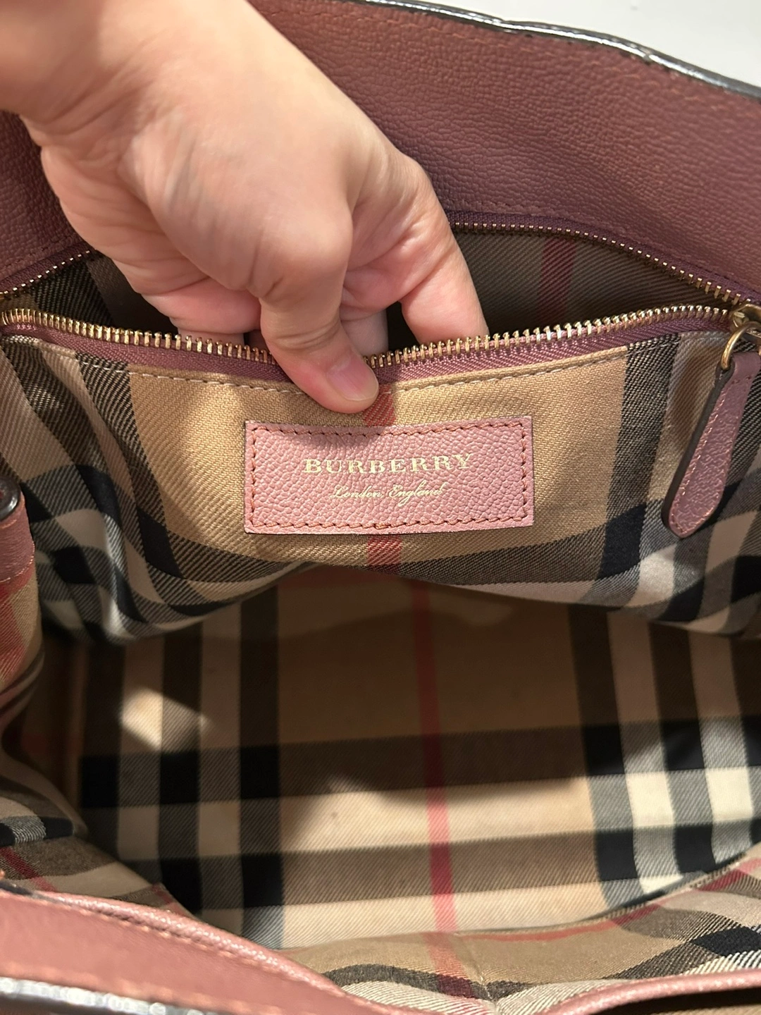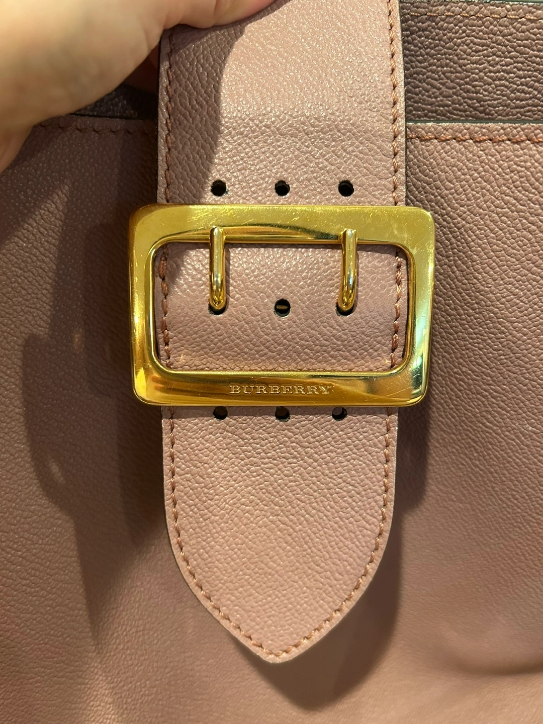 Selling a Burberry tote bag in a lovely pink leather. It has a buckle detail on the front and the classic Burberry plaid lining. There are some signs of wear, but it's still a stylish and functional bag! Comes with a third party Certificate of Authenticity.