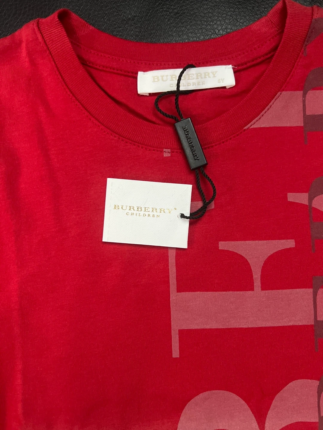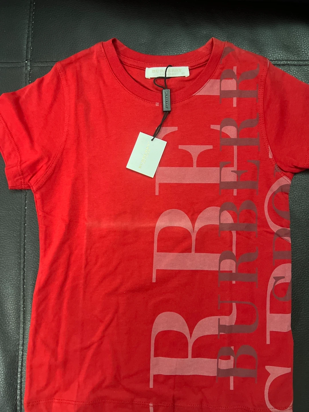 34Here's a bright red Burberry children's t-shirt! It's brand new with tags still attached. The shirt features the Burberry logo in a large print on the front. This is a stylish piece for your little one's wardrobe!