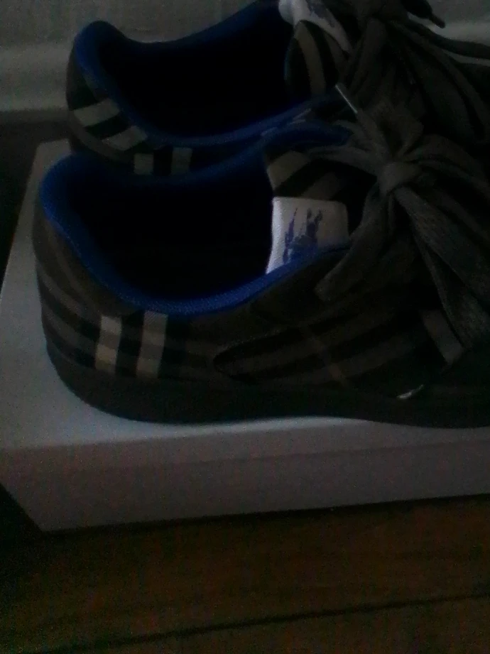 15Selling a pair of Burberry sneakers. They feature a stylish design with stripes and a vibrant blue interior. These sneakers are perfect for everyday wear and offer both comfort and a classic look! Size 44 which is a size 11 in Us men
