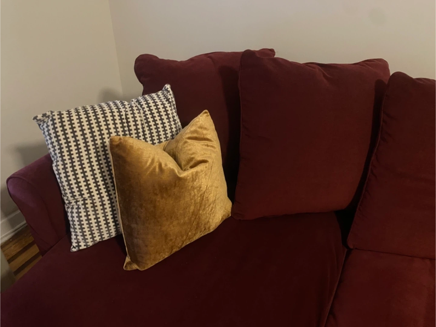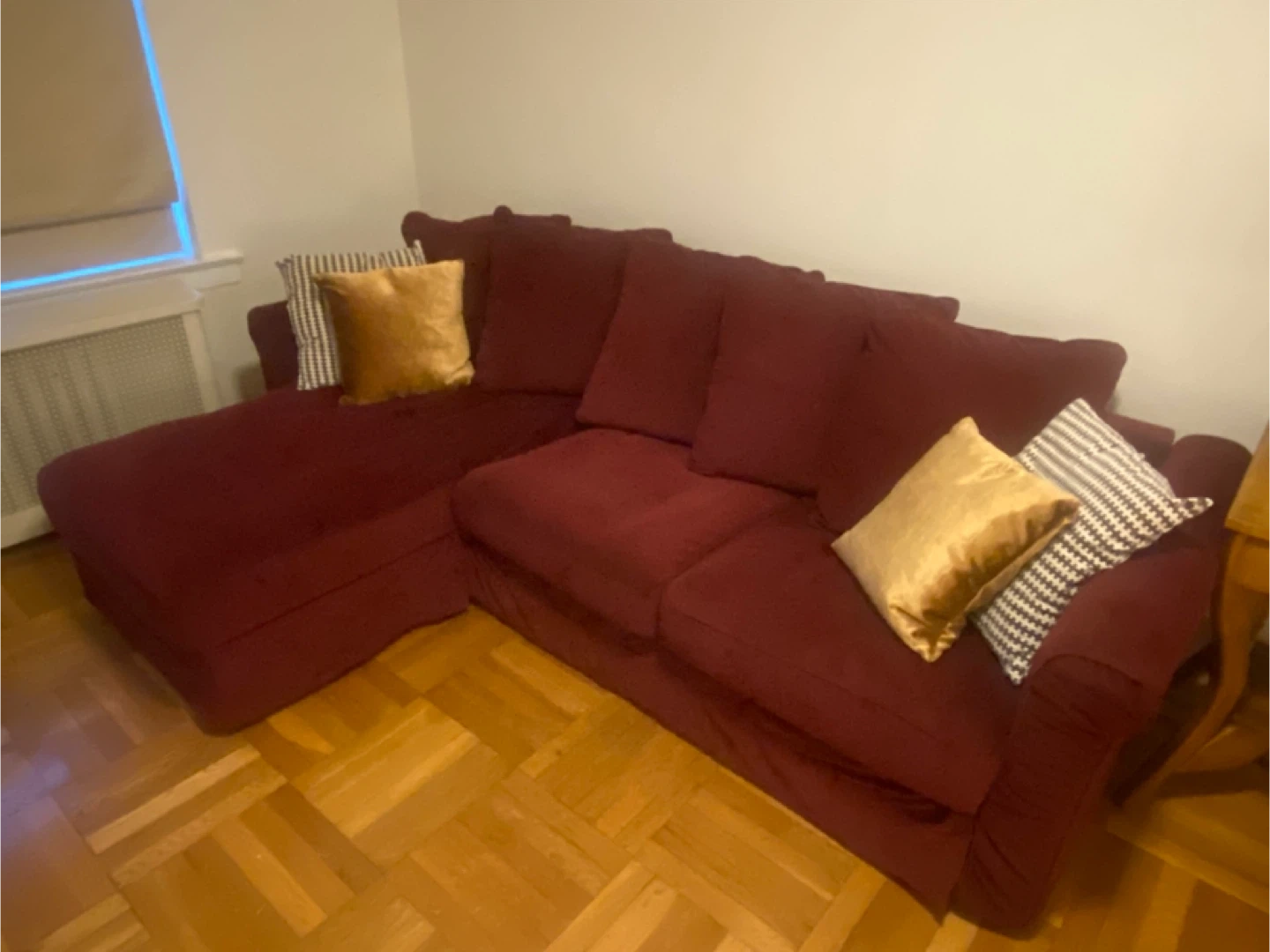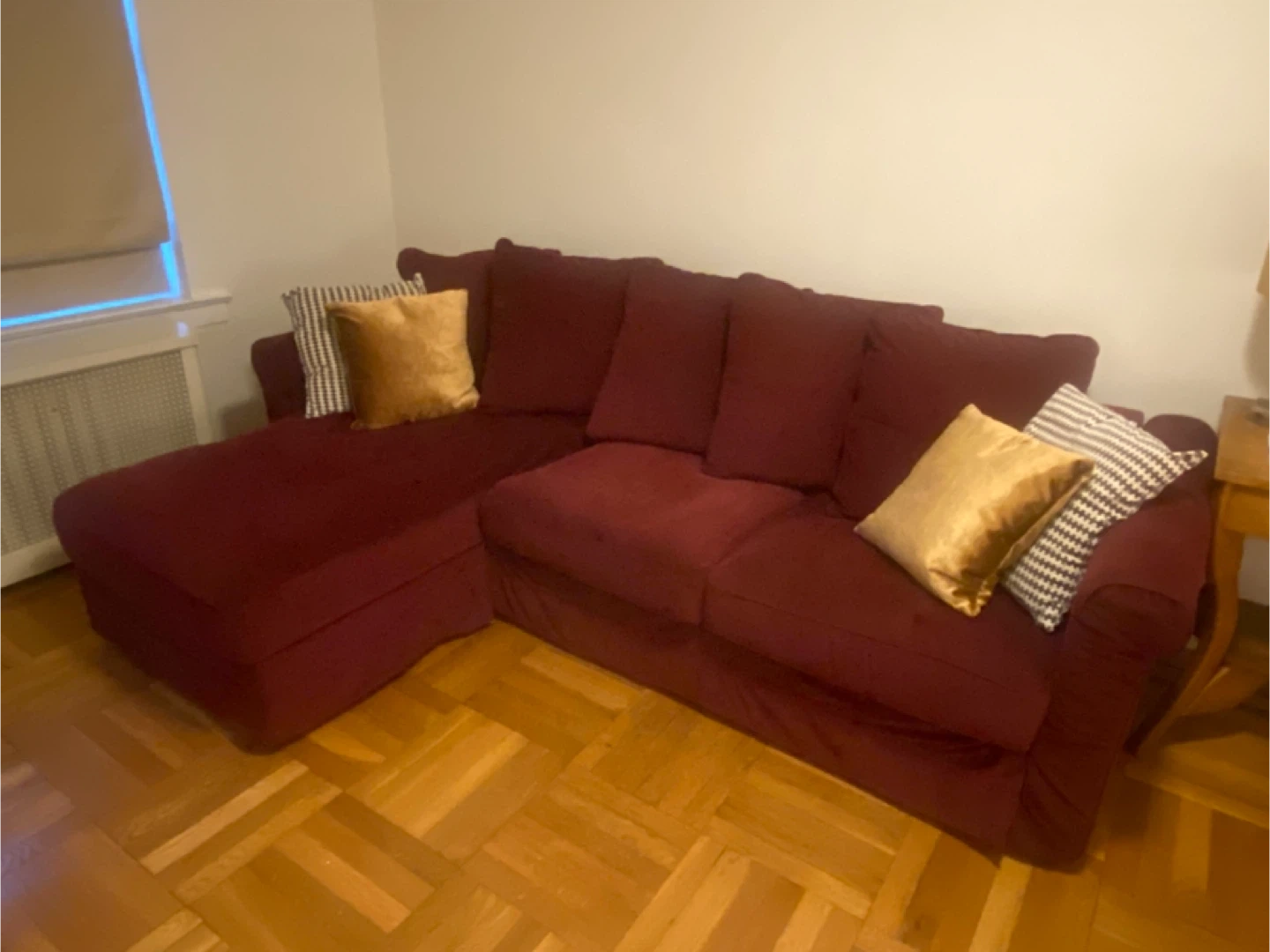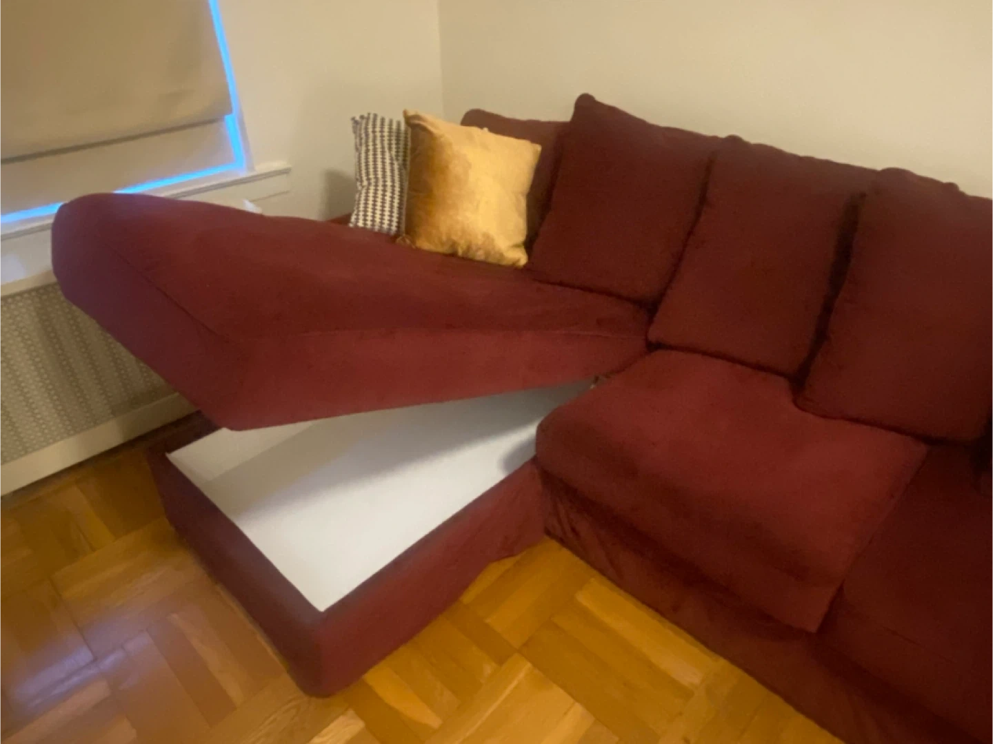 *** Item is in BAY RIDGE BROOKLYN This is an IKEA burgundy sectional sofa from the Gronlid series that's in good condition. It features a chaise lounge and includes built-in storage under the seat. Oversized pillows for the back. Was able to store pillows, blankets, winter clothes, etc… in the storage compartment. Washable pillow covers and has velcro to attach to couch frame. It's a comfortable and stylish addition to any living room! Will need 2 or more people to move. Will include pillows if interested Added a measurement guide for the couch Asking $250 OBO