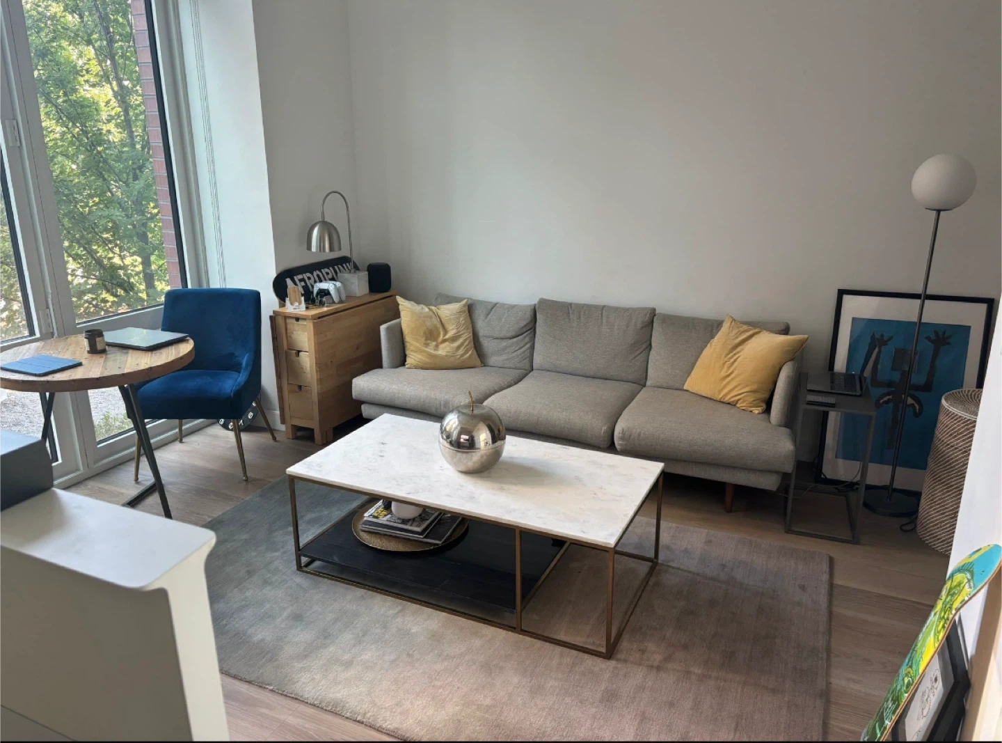 Blue Three-Seat Sofa