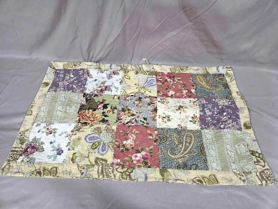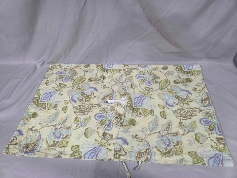 These king size, floral pillow shams have a flower-like design on the front and tying backs to secure pillows. They are in good condition and would work well with old-fashioned bedding. Please ask if you have any questions.