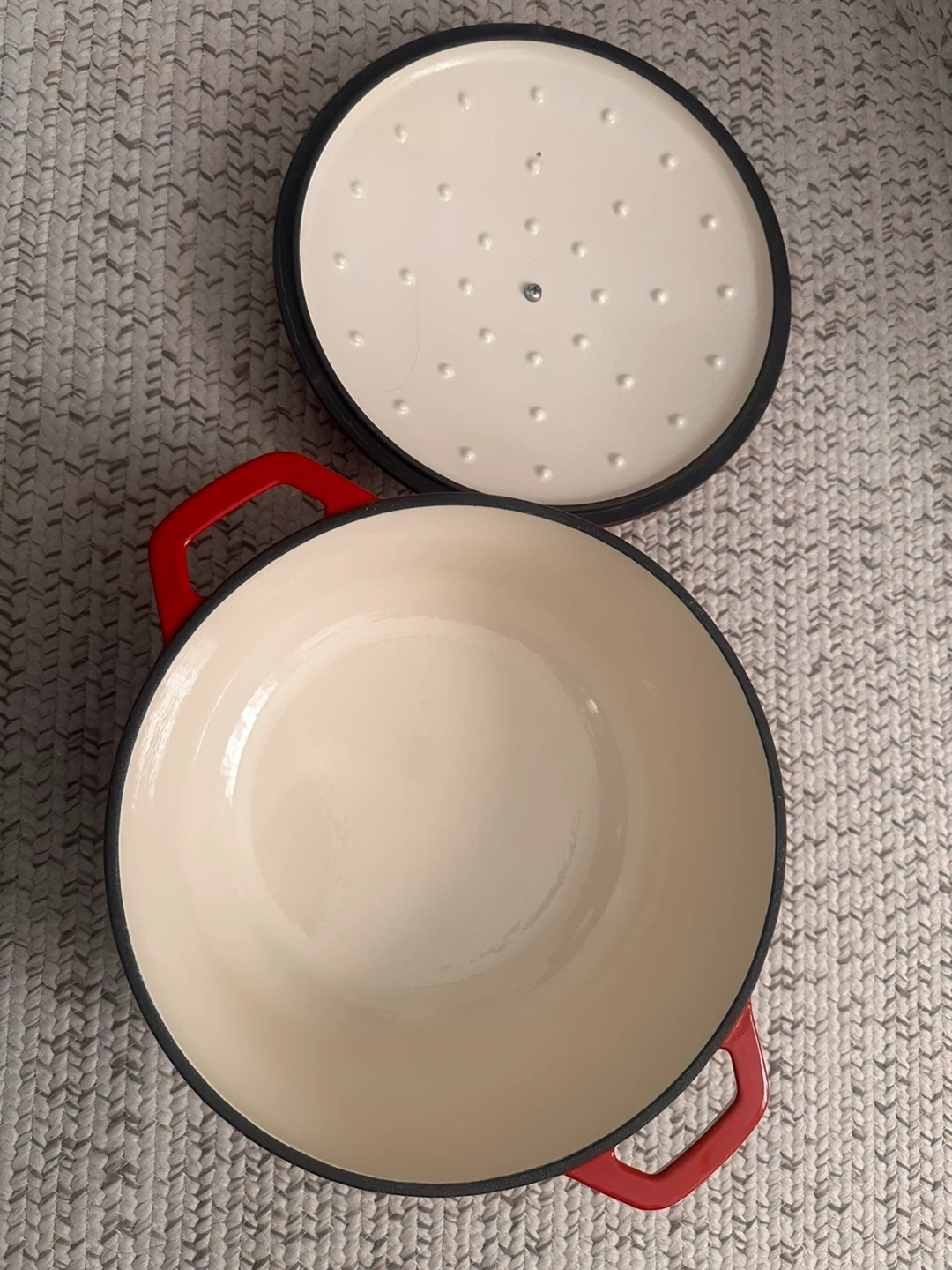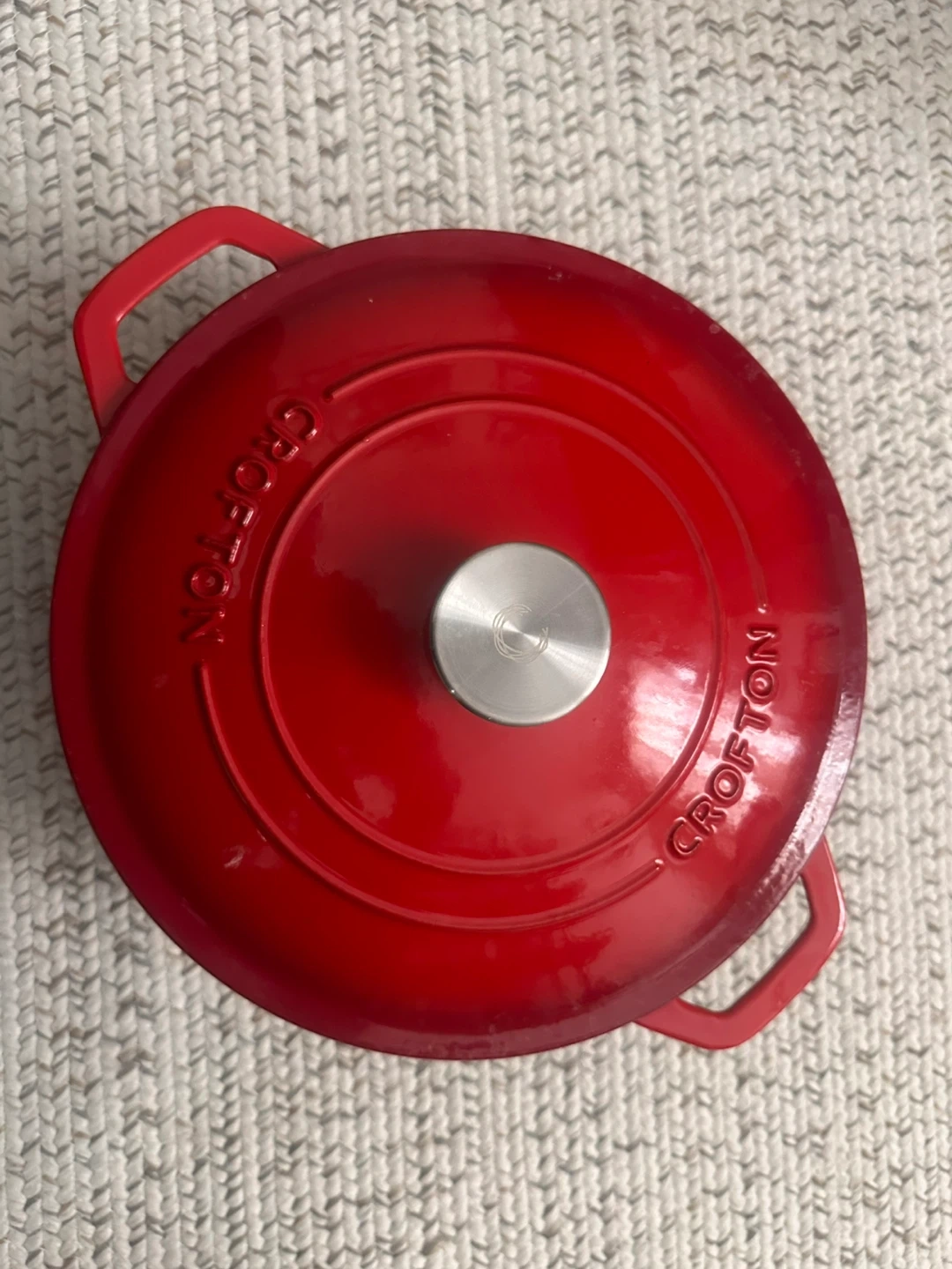 Selling a red Crofton 6qt enameled cast iron Dutch oven. It’s in new condition and ready for your next culinary adventure! Perfect for stews, soups, or baking bread. The enameled surface makes it easy to clean and maintain.