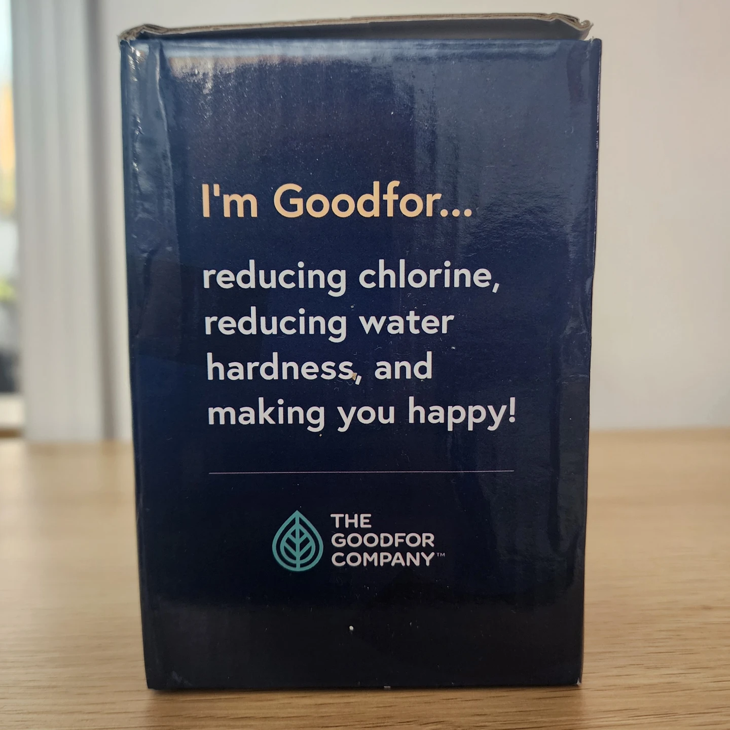 This is an alkaline filtered shower filter from The Goodfor Company. It's designed to reduce chlorine and water hardness. Includes the original box.