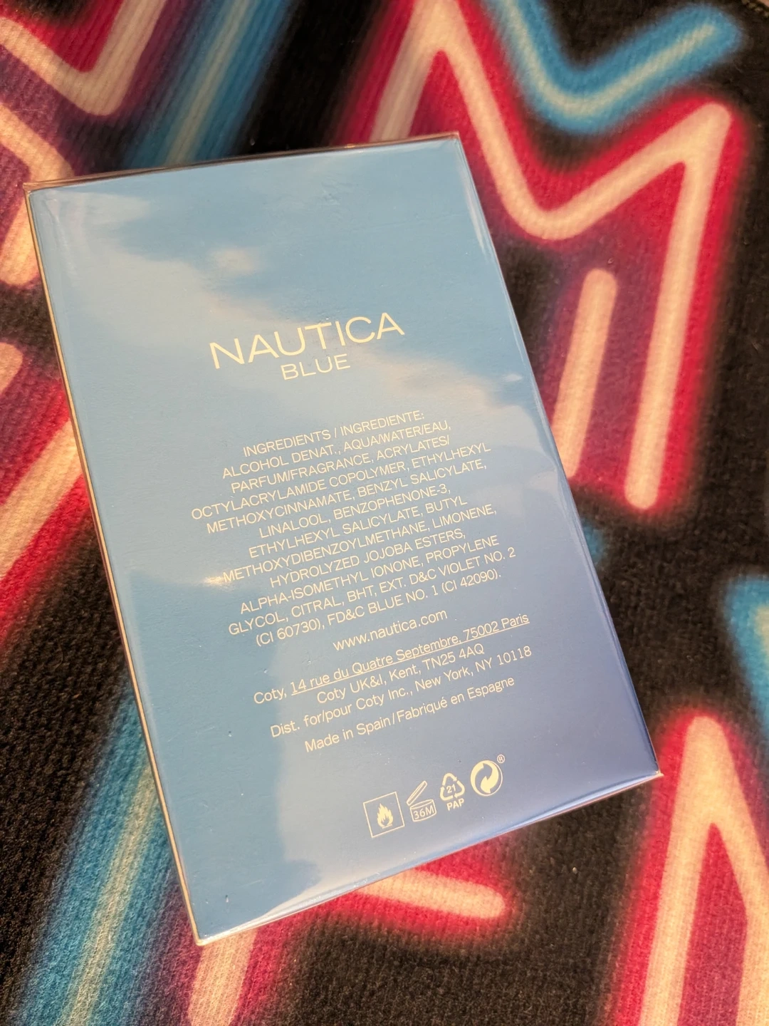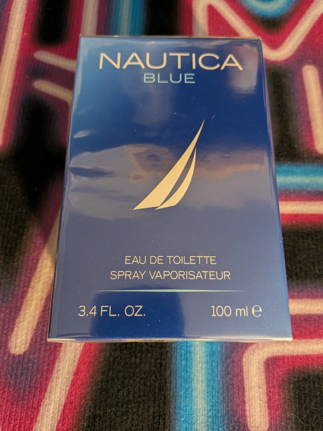 This is a new, sealed Nautica Blue Eau de Toilette spray. It's a 3.4 Fl. Oz. bottle, also 100 ml.